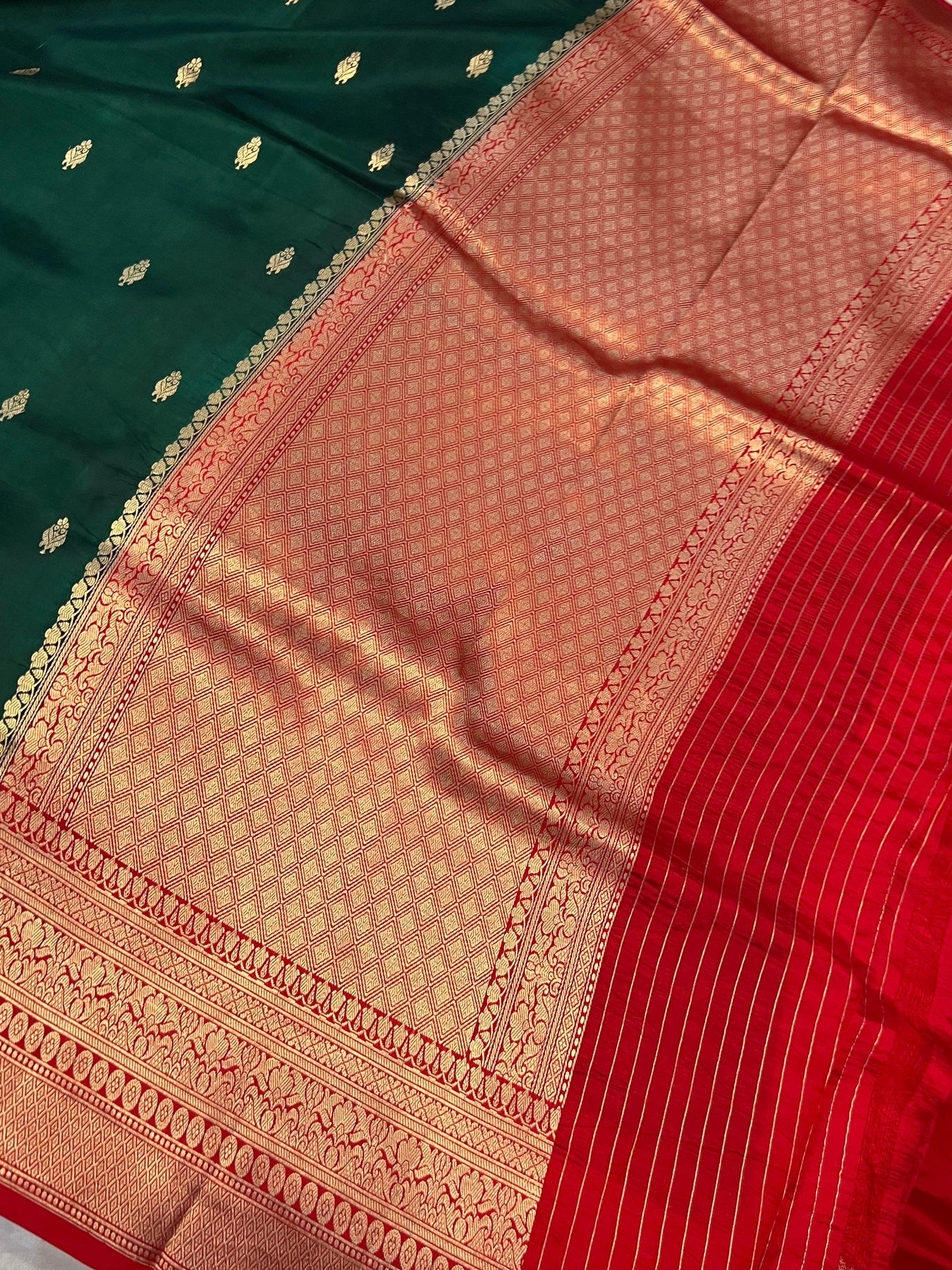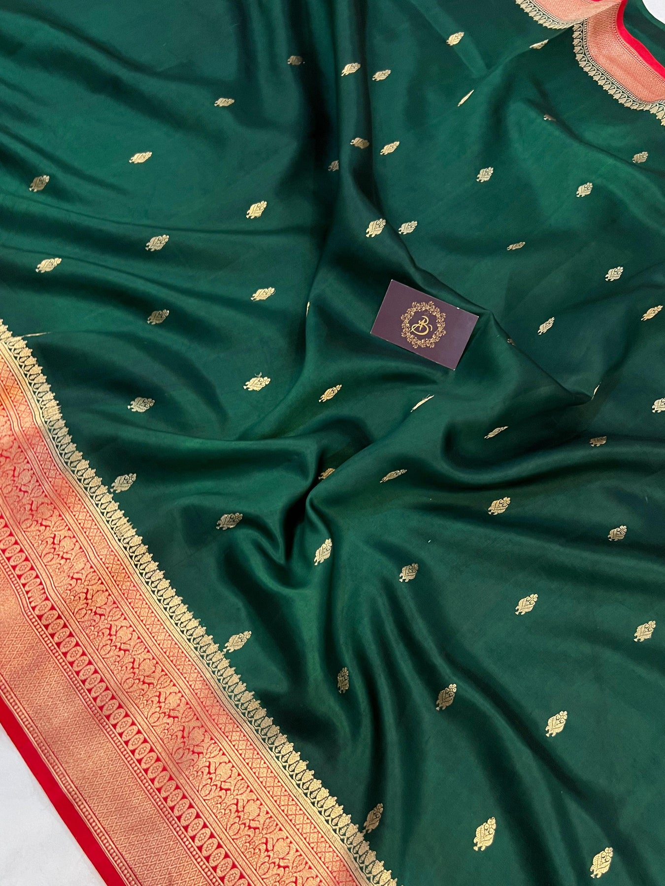 Bottle Green Pure Banarasi Handloom Silk Saree