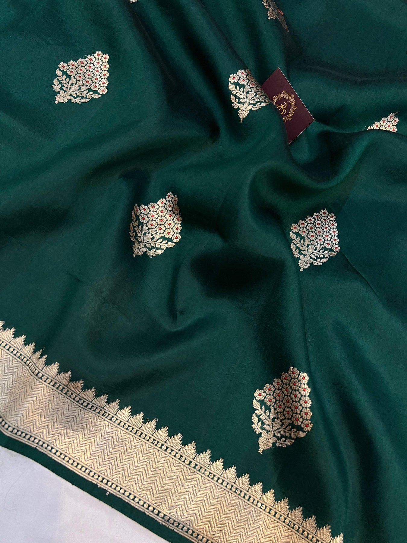 Bottle Green Pure Banarasi Handloom Silk Saree