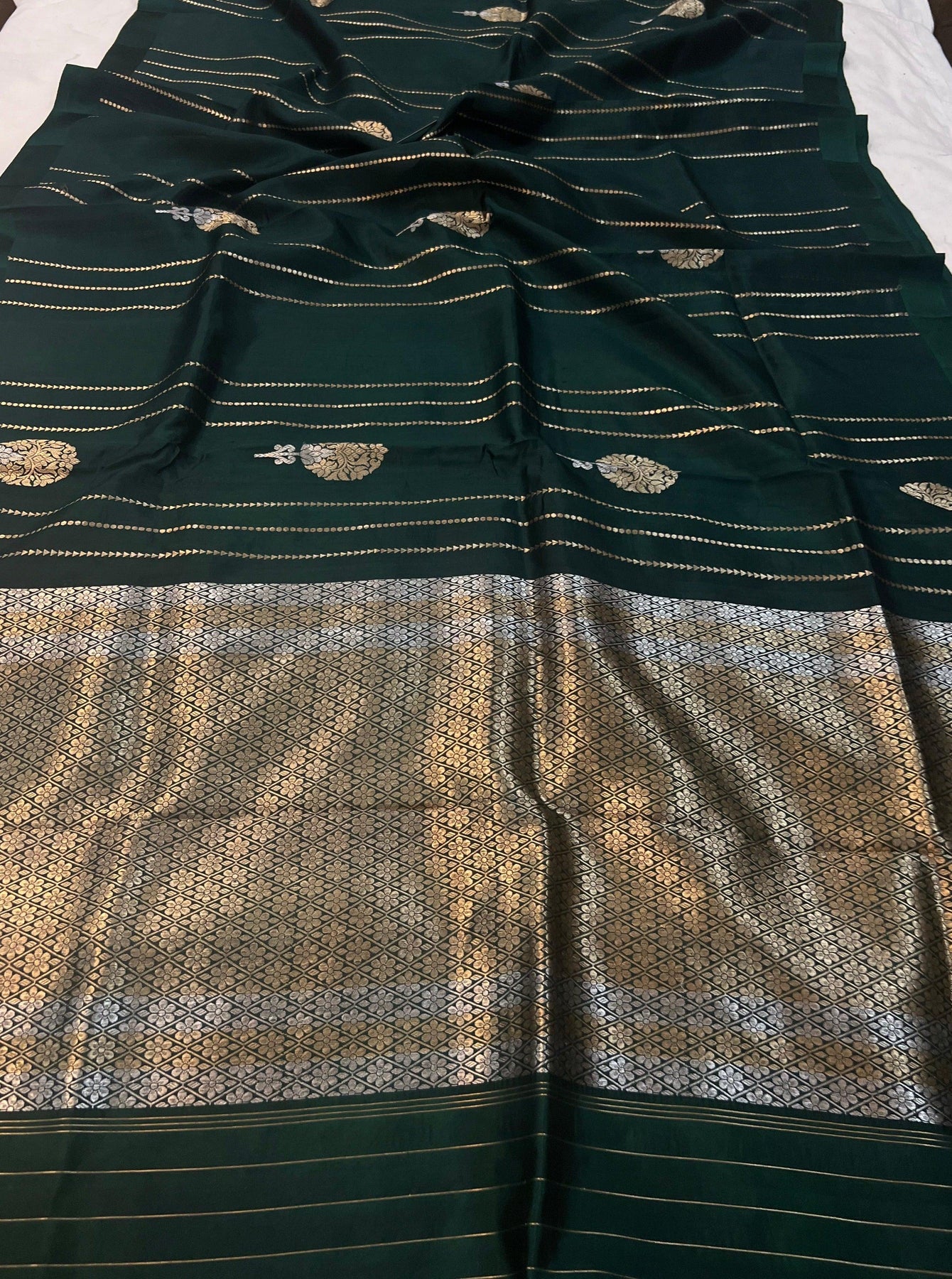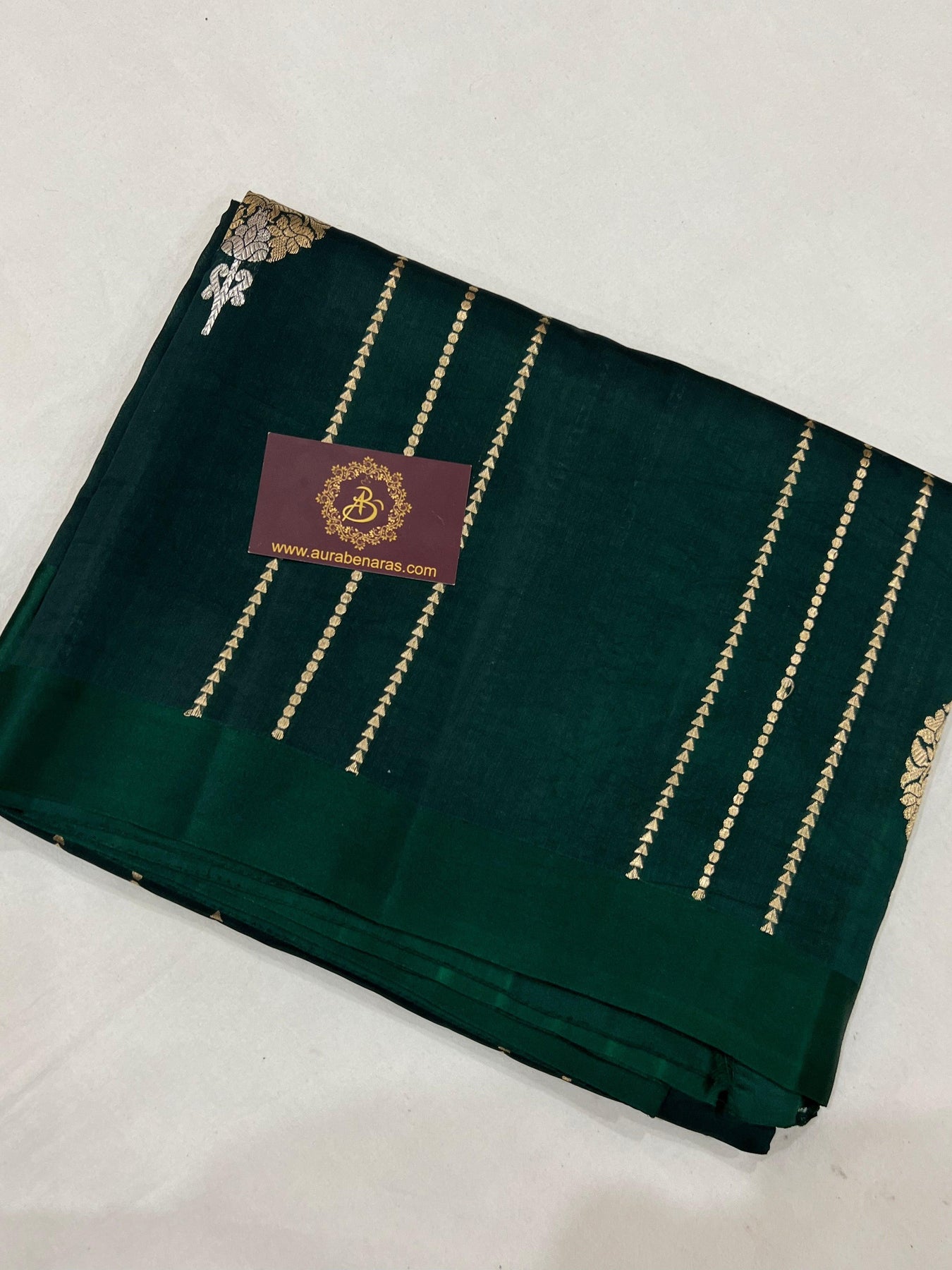 Bottle Green Pure Banarasi Handloom Silk Saree