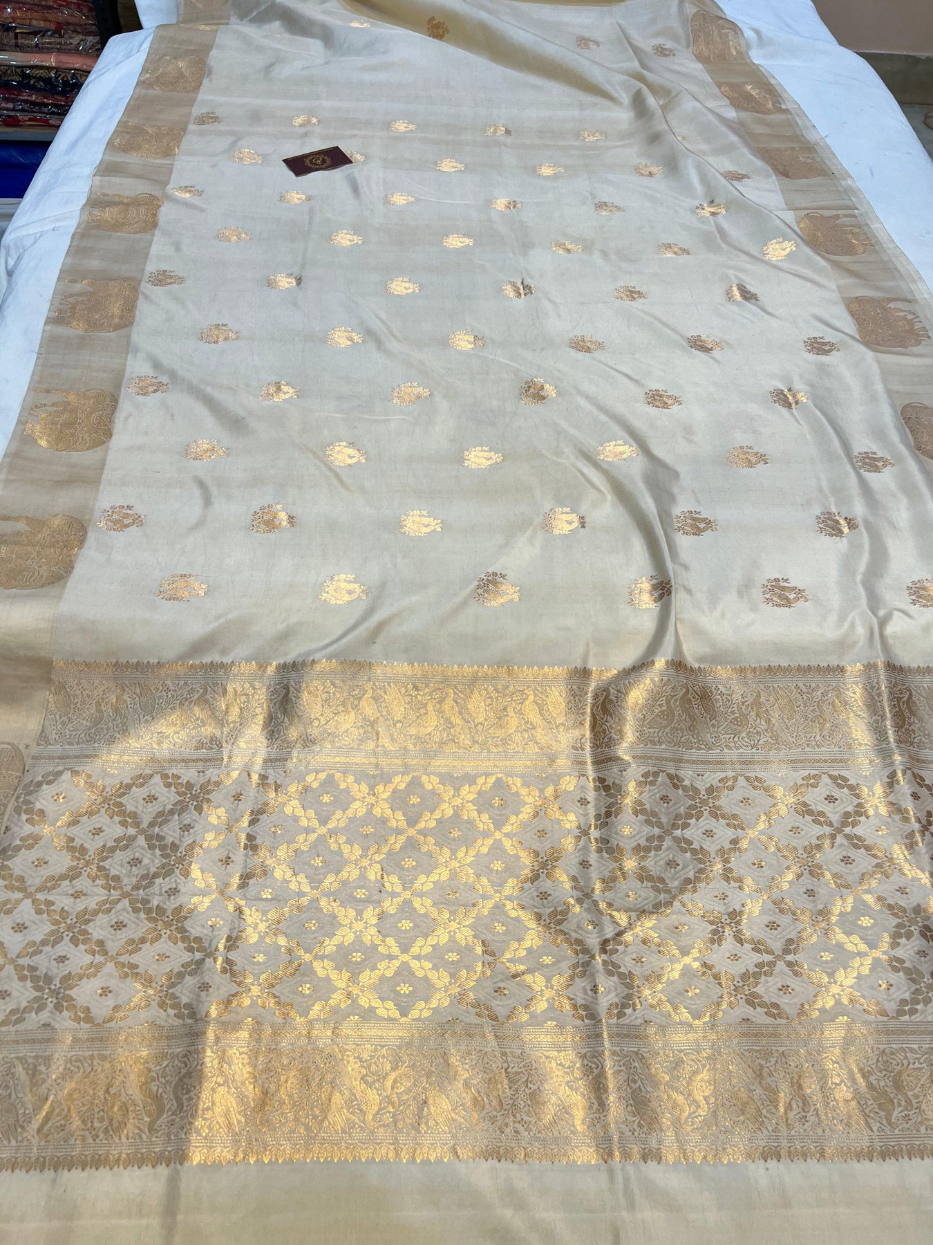 Cream Pure Silk Handloom Banarasi Saree with Kadhwa motifs