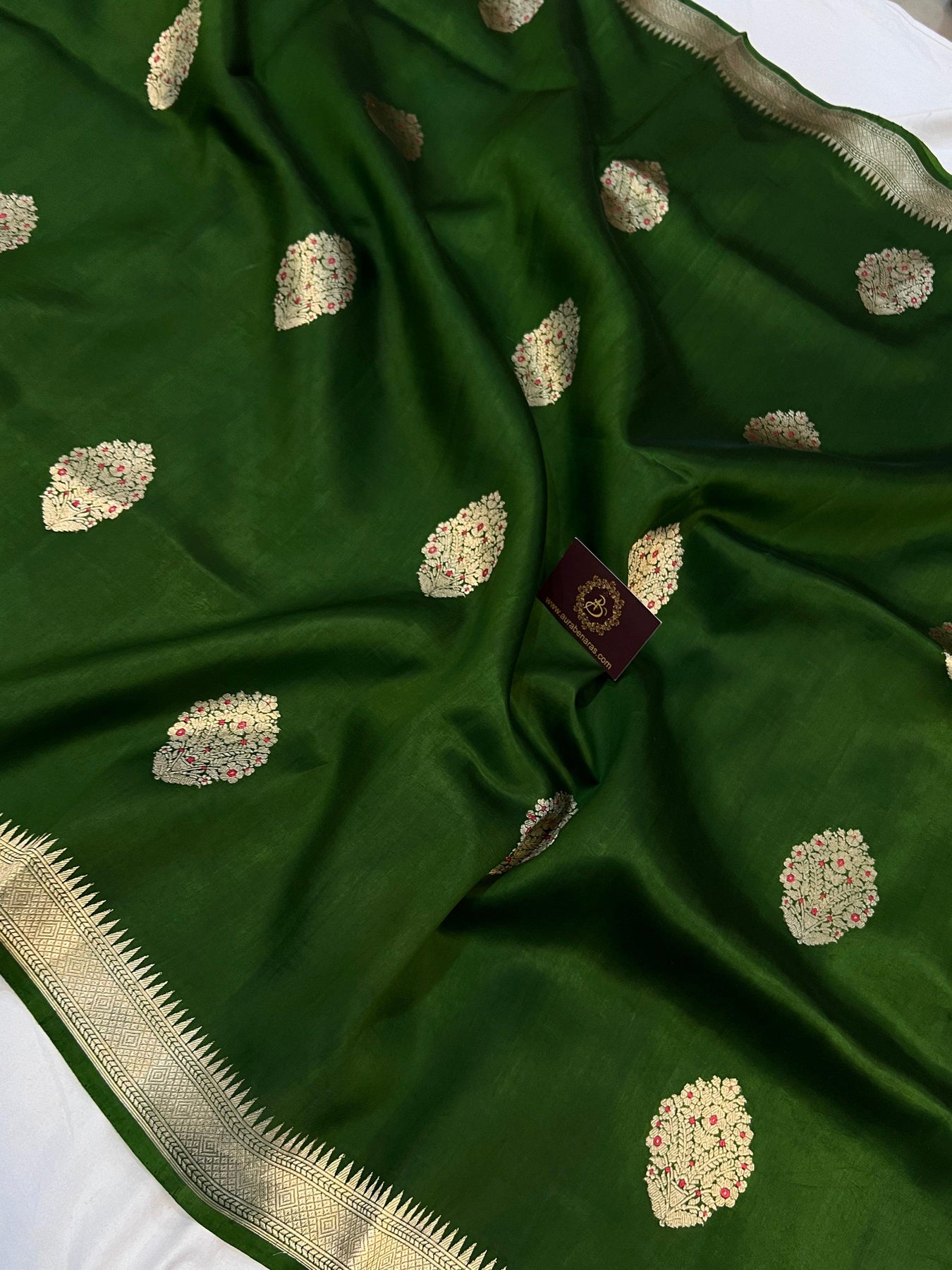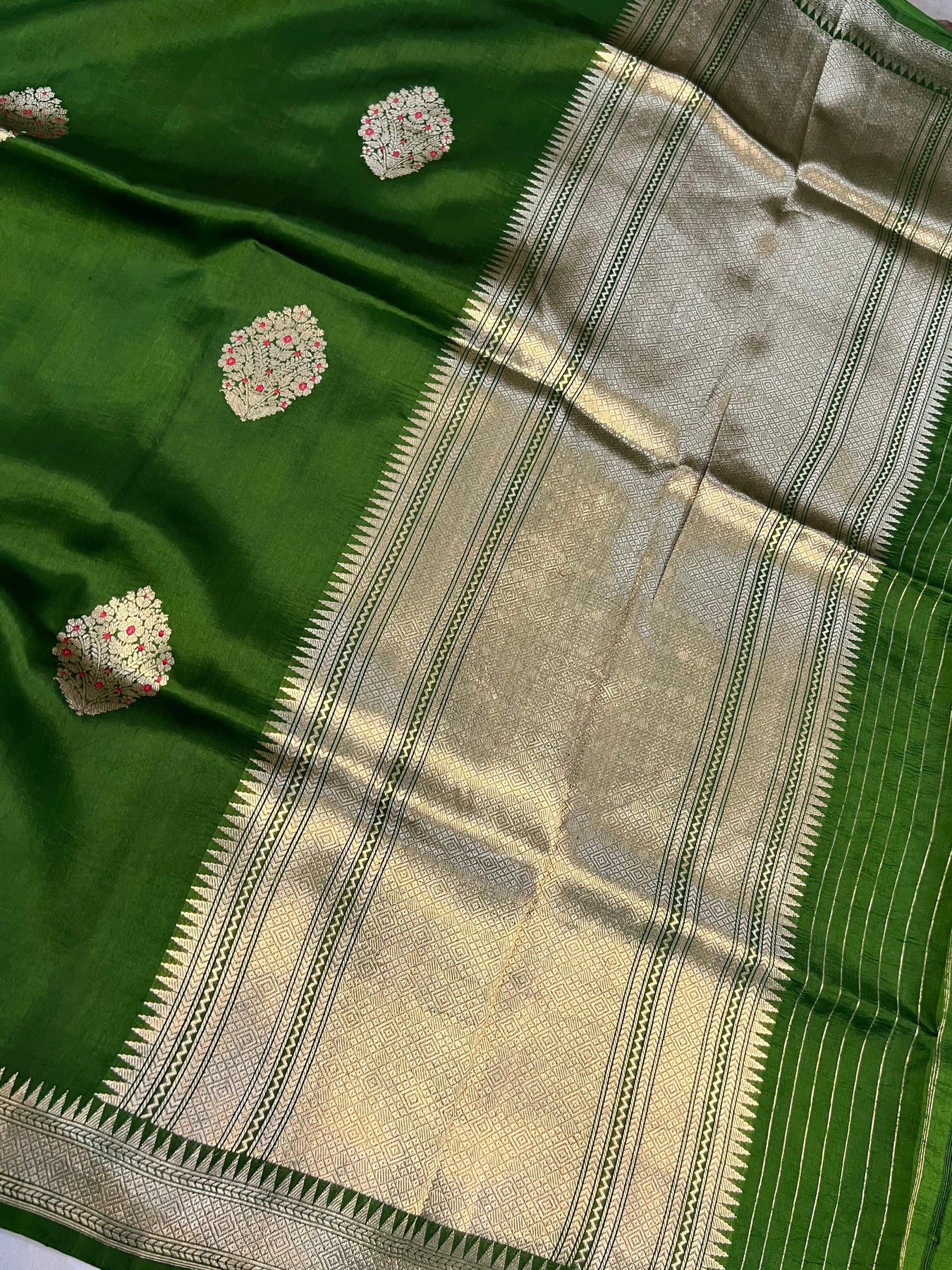 Mehendi Green Pure Banarasi Handloom Silk Saree