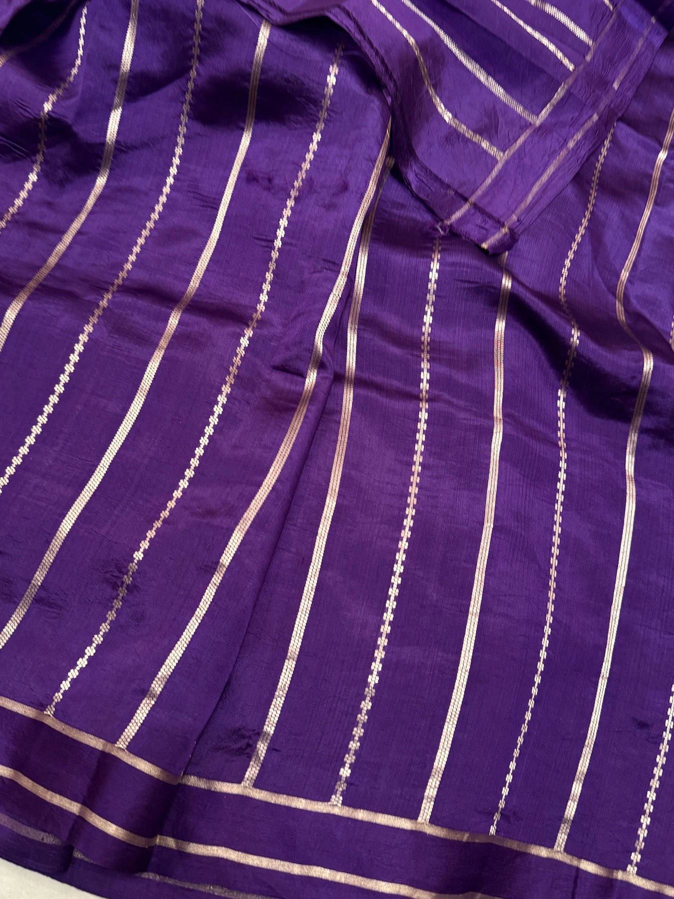 Timeless and elegant, this Purple pure silk handloom Banarasi saree is a celebration of traditional Indian weaving at its finest. Crafted from premium pure silk, the saree is adorned with delicate Kadhwa meena butis, handwoven using the labor-intensive Kadhwa technique that ensures durability, richness, and intricate detailing.