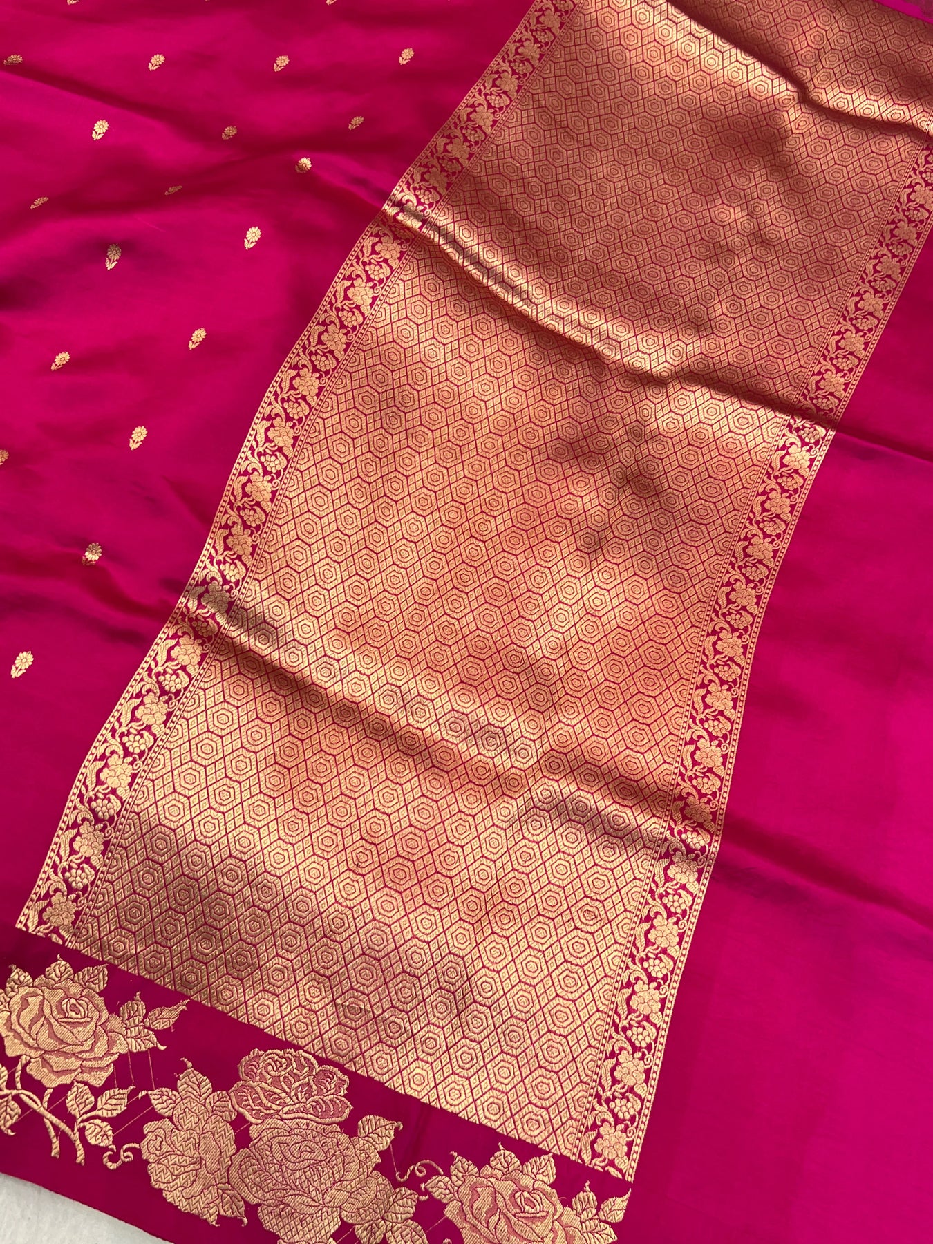 Rani Pink Pure Silk Handloom Banarasi Saree with Kadhwa motifs