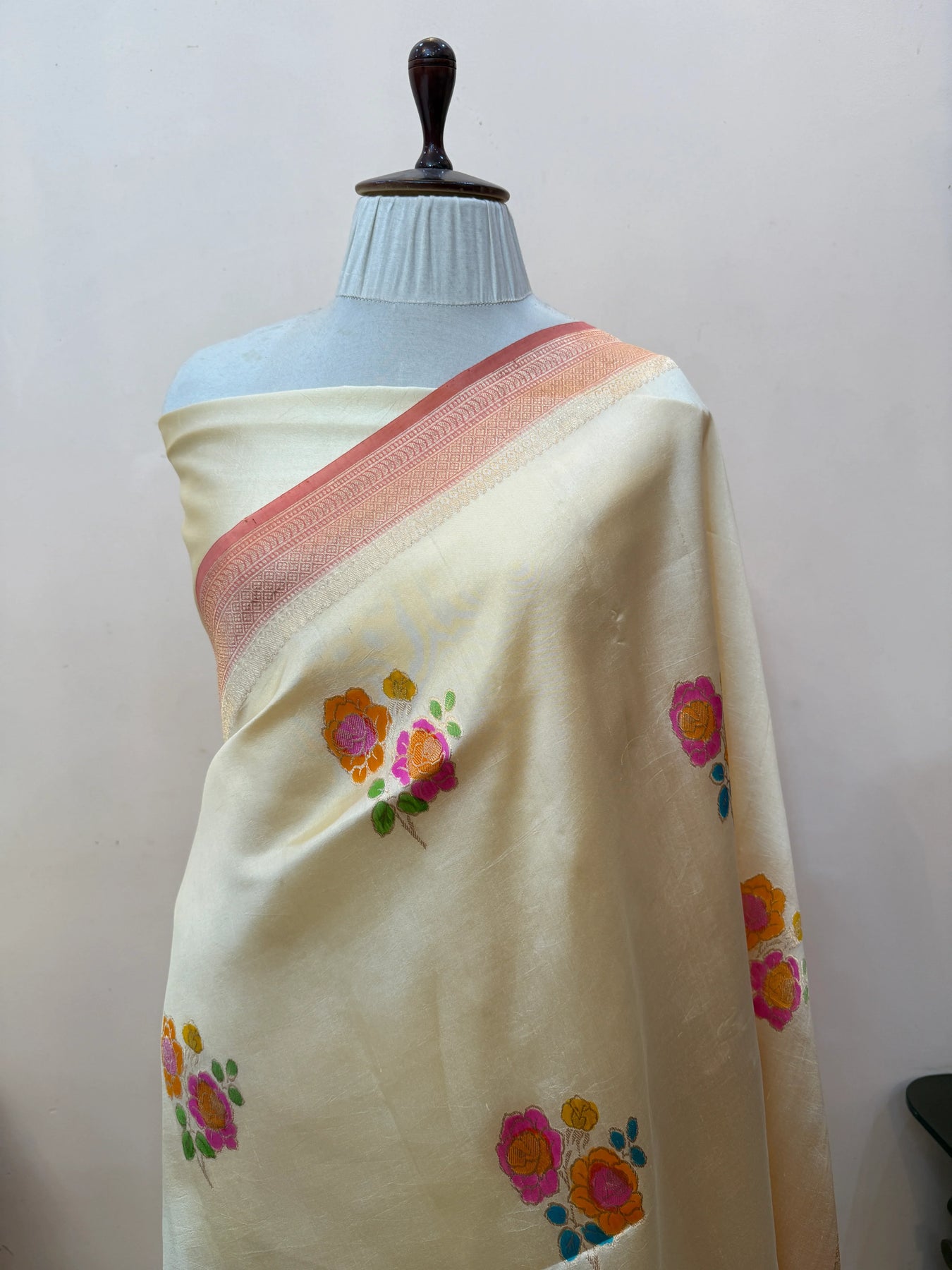 Pale Yellow Pure Silk Handloom Banarasi Saree