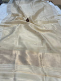 Cream Pure Kora Silk Handloom Banarasi Saree with Kadhwa Buti & Mashru Border