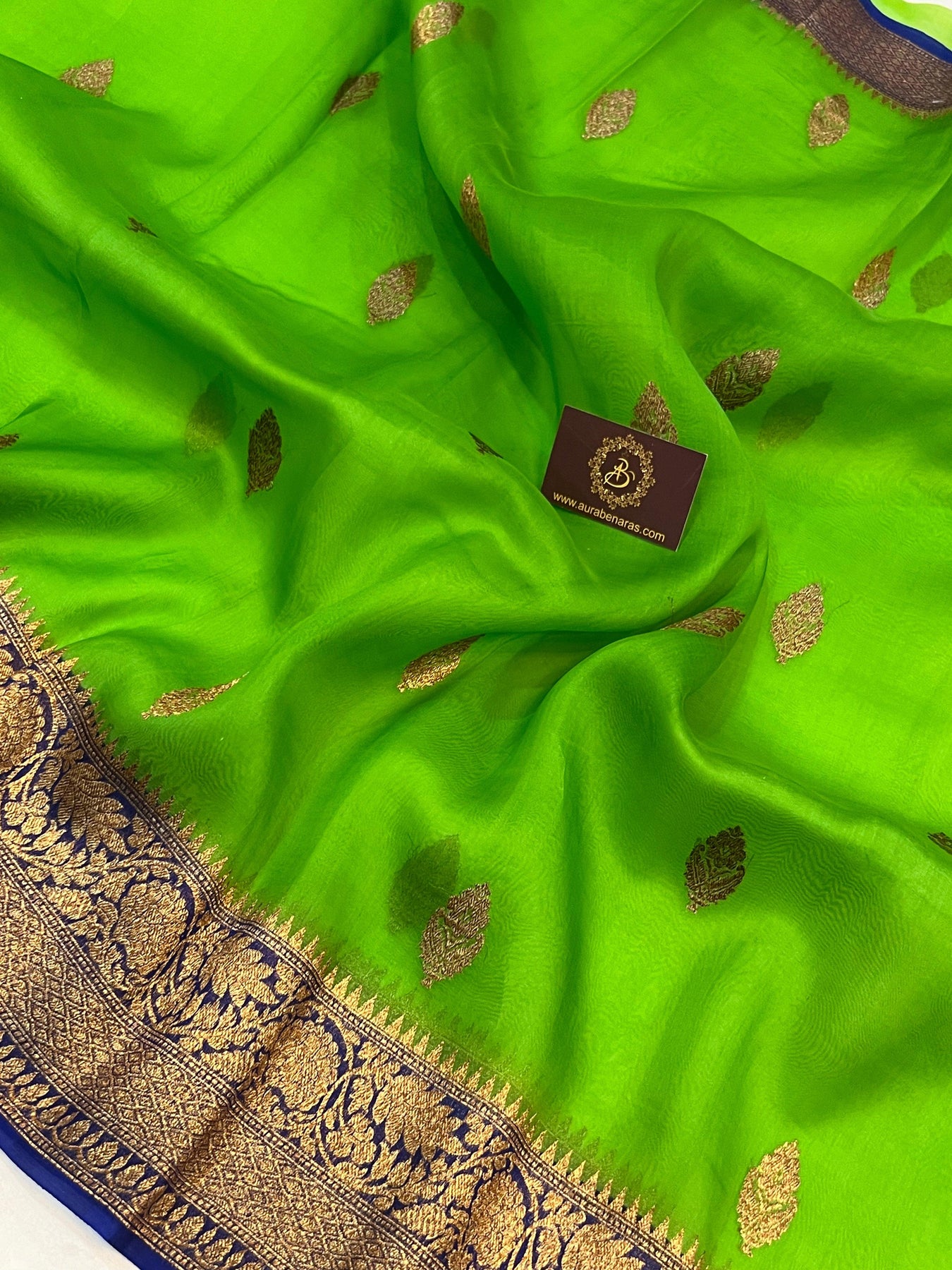 An amazing Handwoven Kora Silk in a Green color to take your breath away. This vintage piece has allover Kadwa(Kadhua) motifs in antique zari. This handmade treasure exemplifies the Craftsmanship of our Weavers, who have kept the art alive by passing the knowledge from generation to generation. It takes around 15-20 days for artisans to weave one.