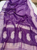Pre Order :: Purple Pure Banarasi Chiffon Tissue Silk Saree