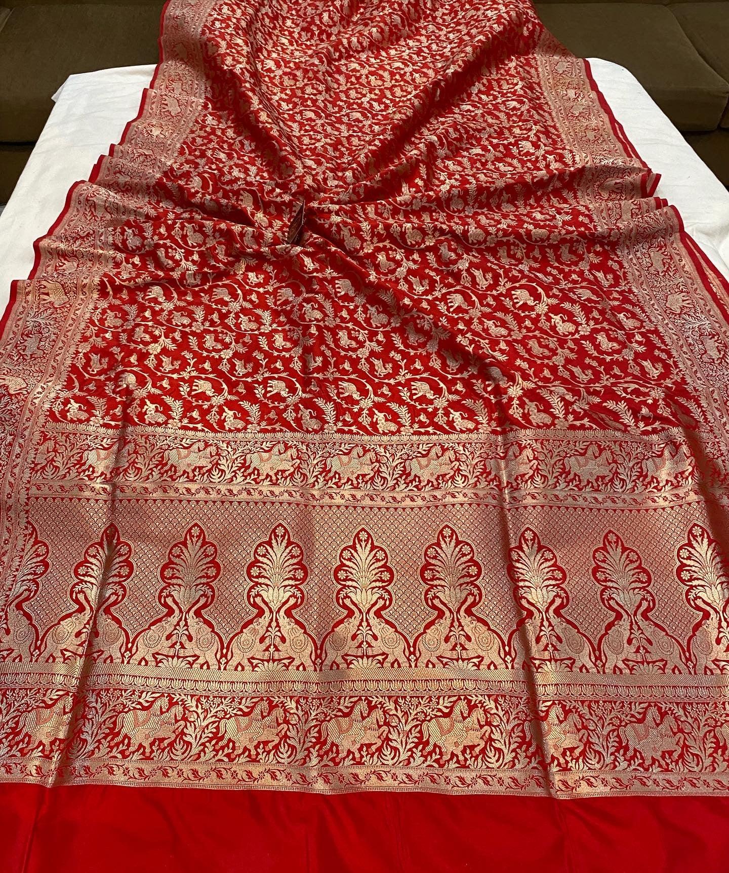 Pre Order :: Red Banarasi Handloom Pure Katan Silk Saree