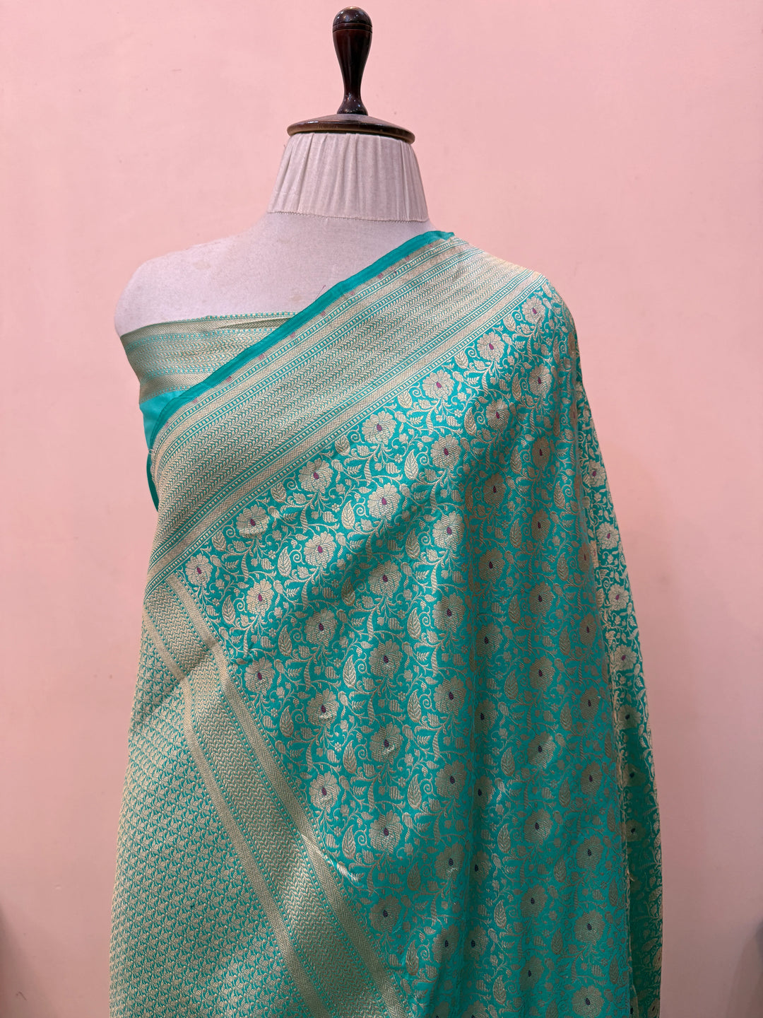 Sea Green Pure Katan silk Handloom Banarasi Saree