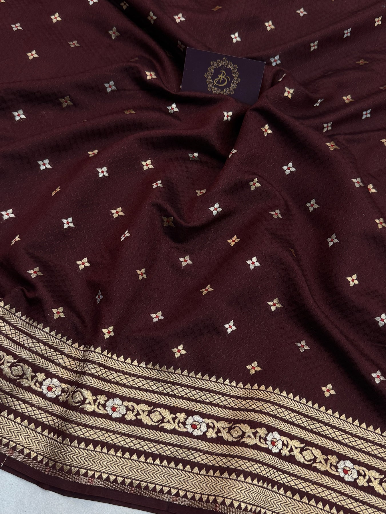Chocolate Brown Pure Chiniya Silk Handloom Banarasi Saree