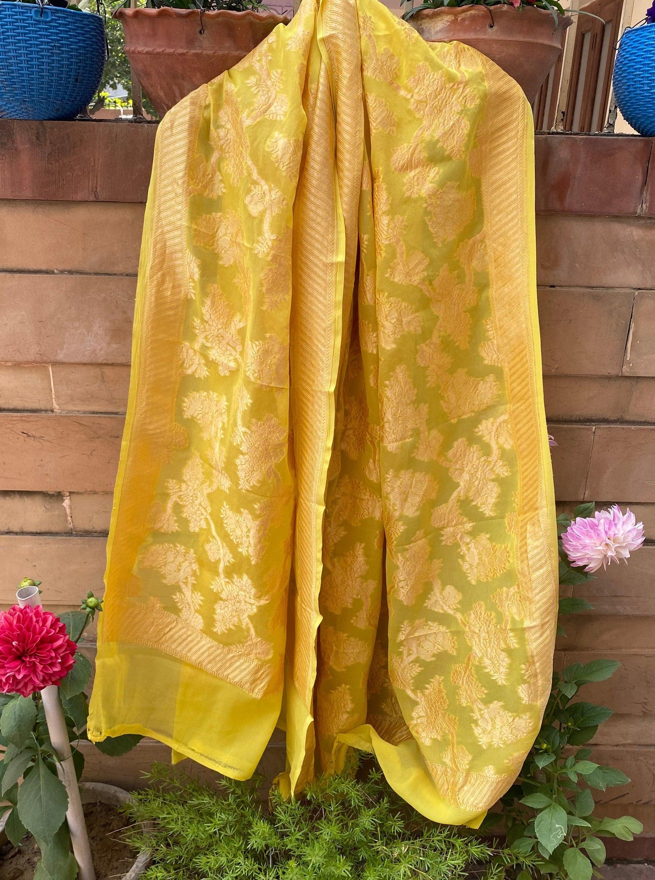 Yellow Pure Banarasi Handloom Georgette Dupatta