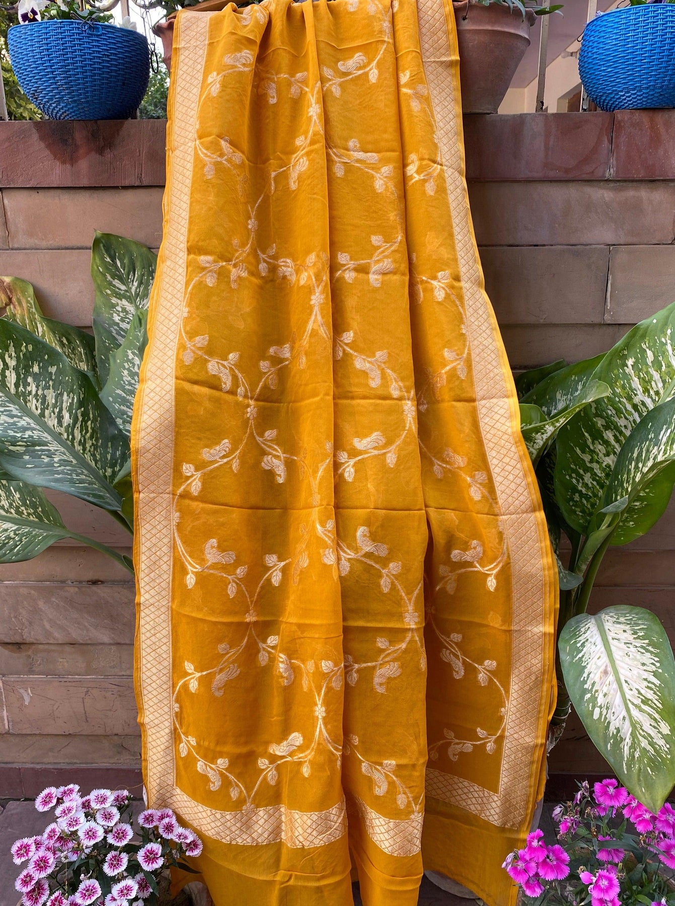 Yellow Pure Banarasi Handloom Georgette Dupatta