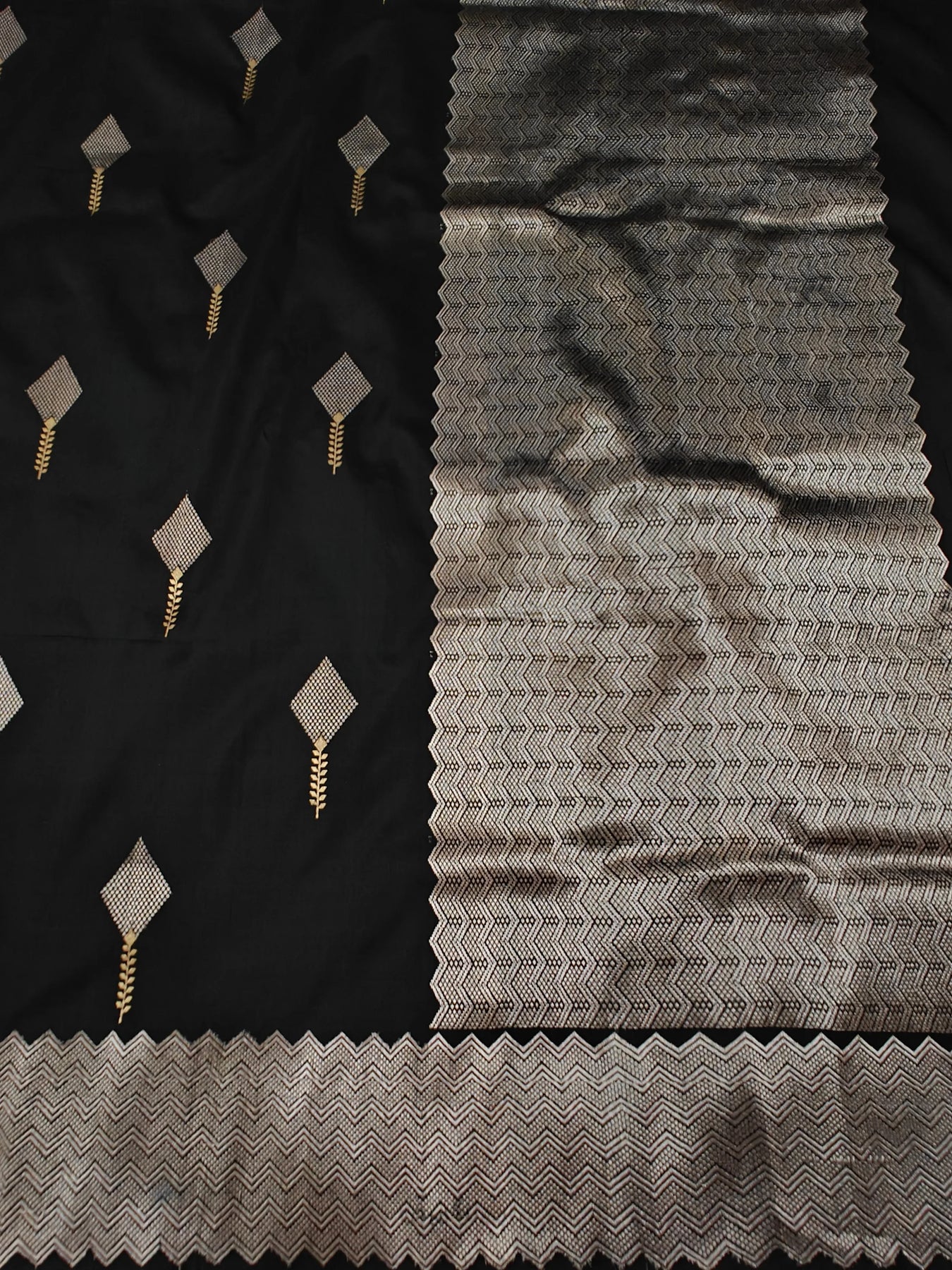- Color - Black Banarasi saree.