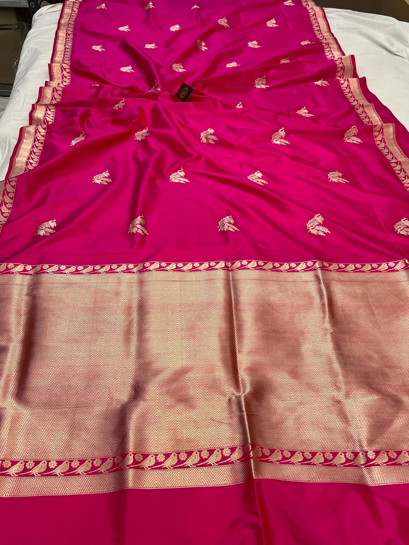 Rani Pink Pure Katan Silk Handloom Banarasi Saree