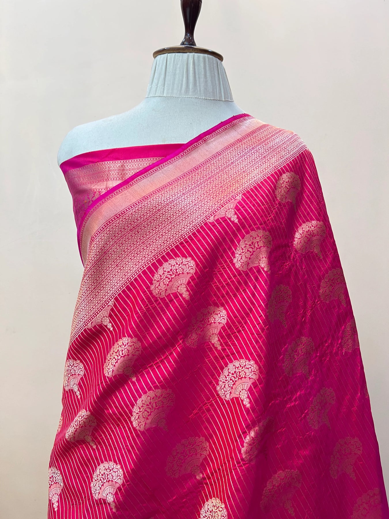 Rani Pink Pure Katan silk Handloom Banarasi Saree