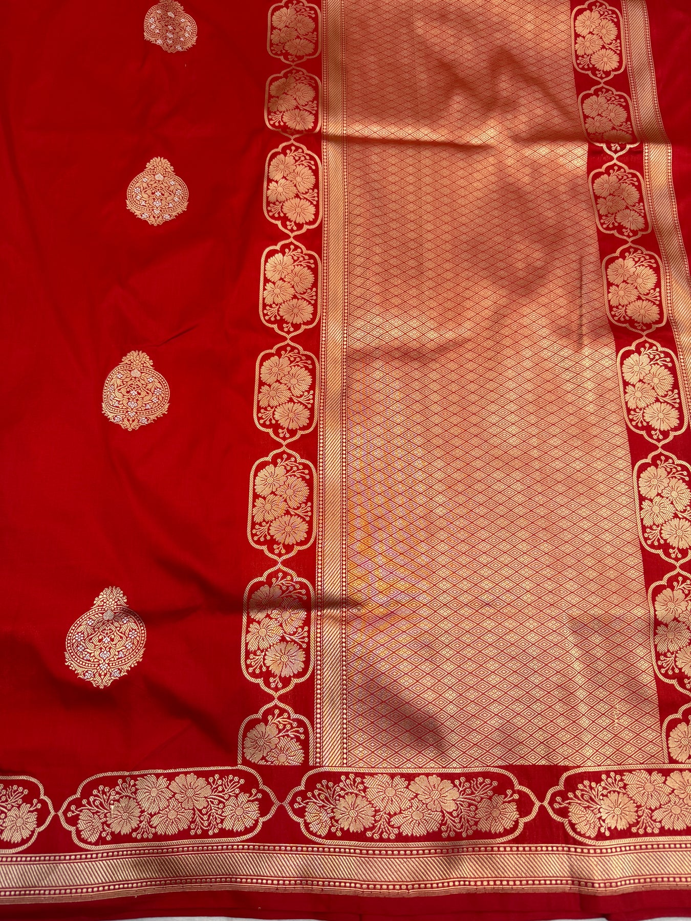 Red Banarasi Handloom Katan Silk Saree - Aura Benaras