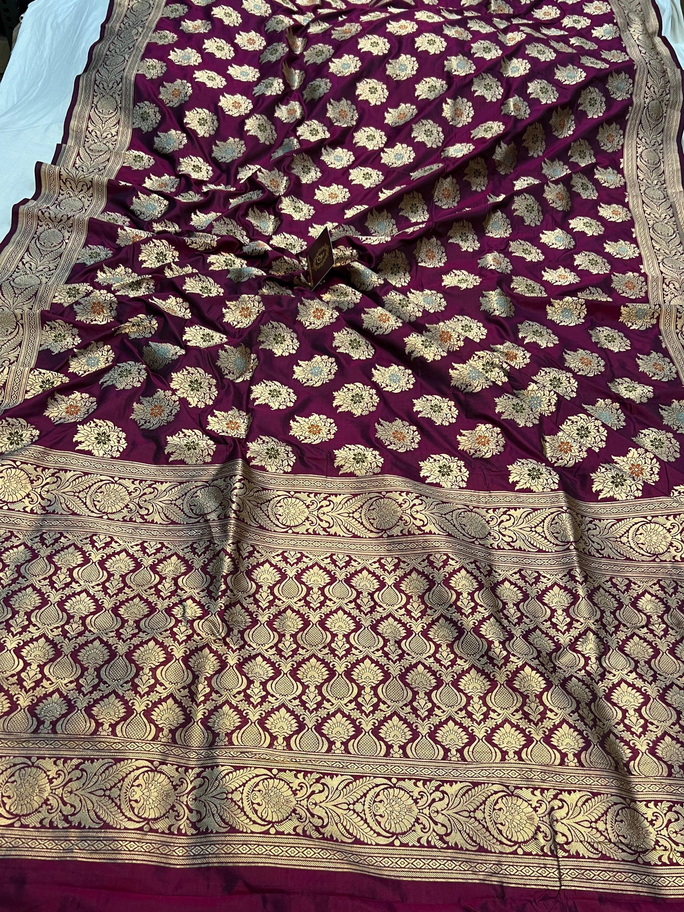 Wine Pure Banarasi Handloom Katan Silk Saree