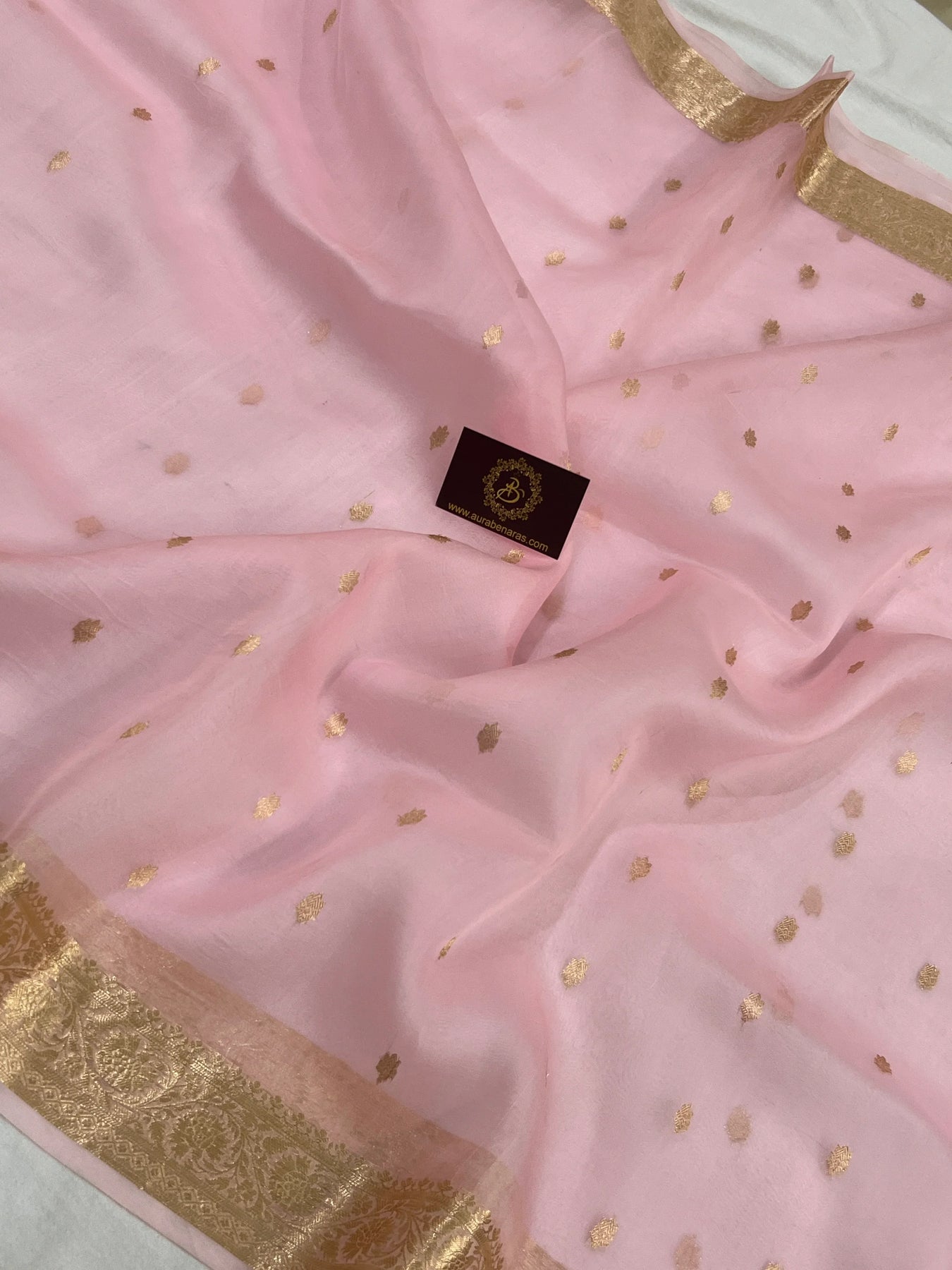 Baby Pink Banarasi Handloom Kora Silk Saree