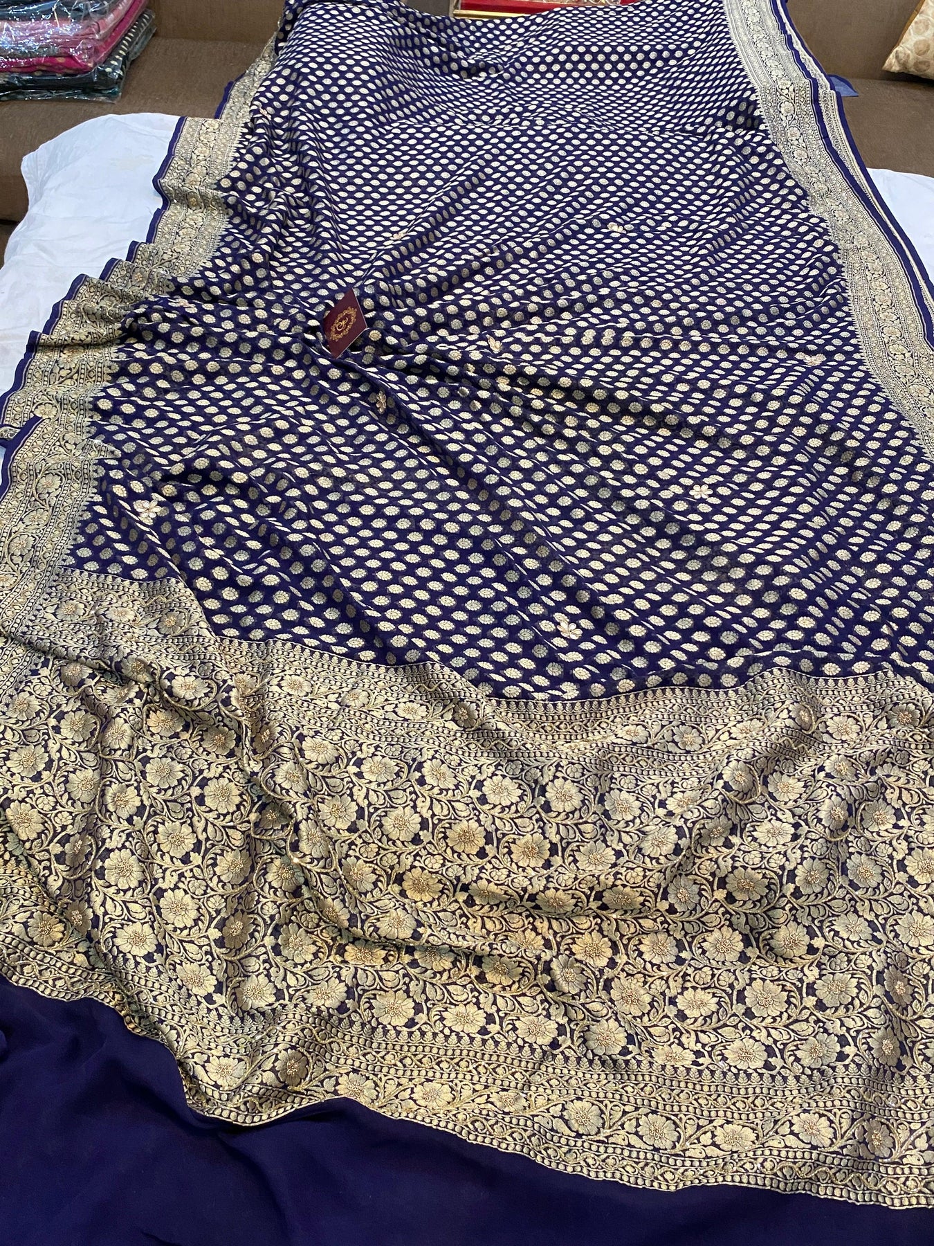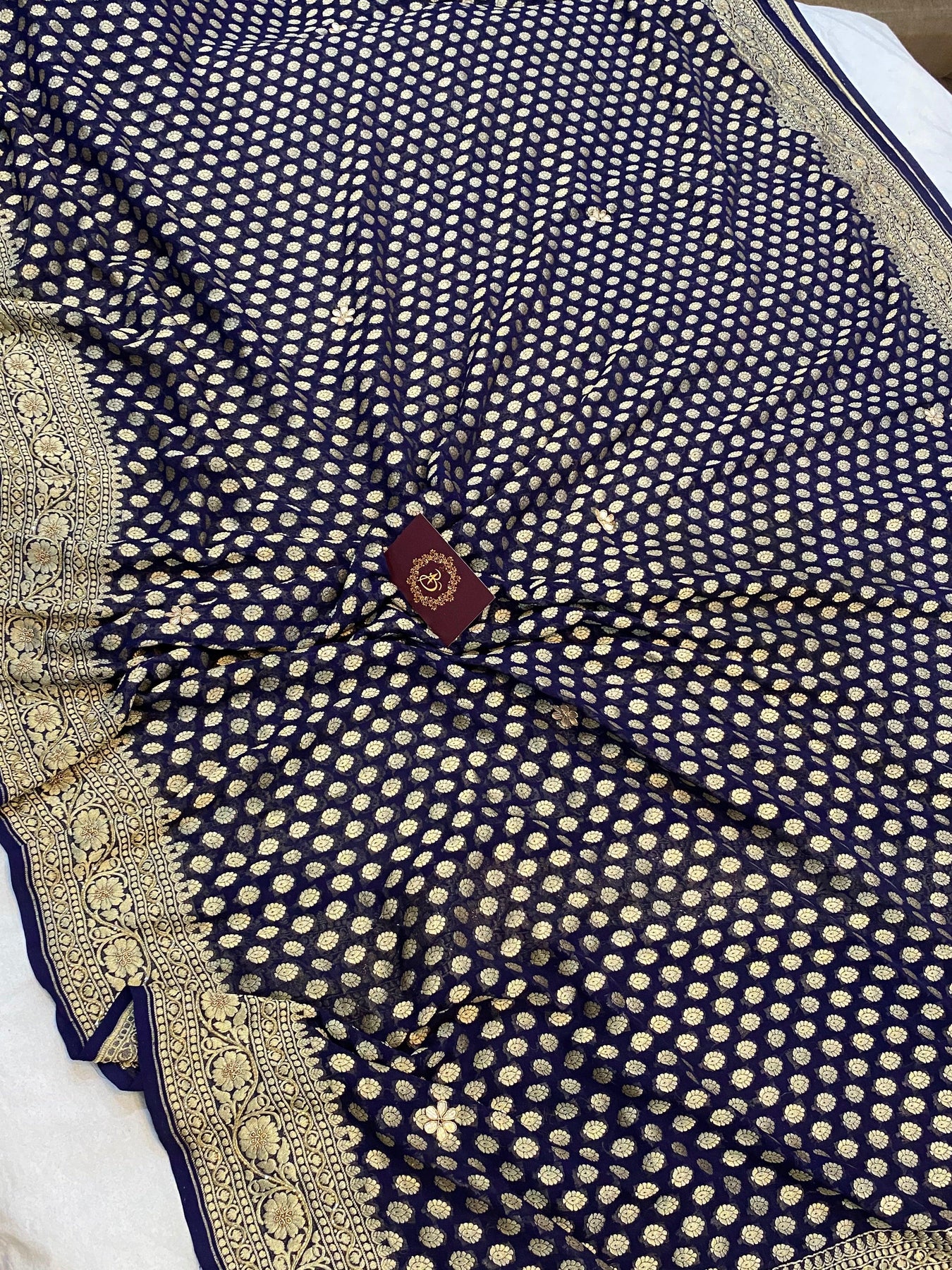 Navy Blue Zardozi Handloom Pure Georgette Silk Saree