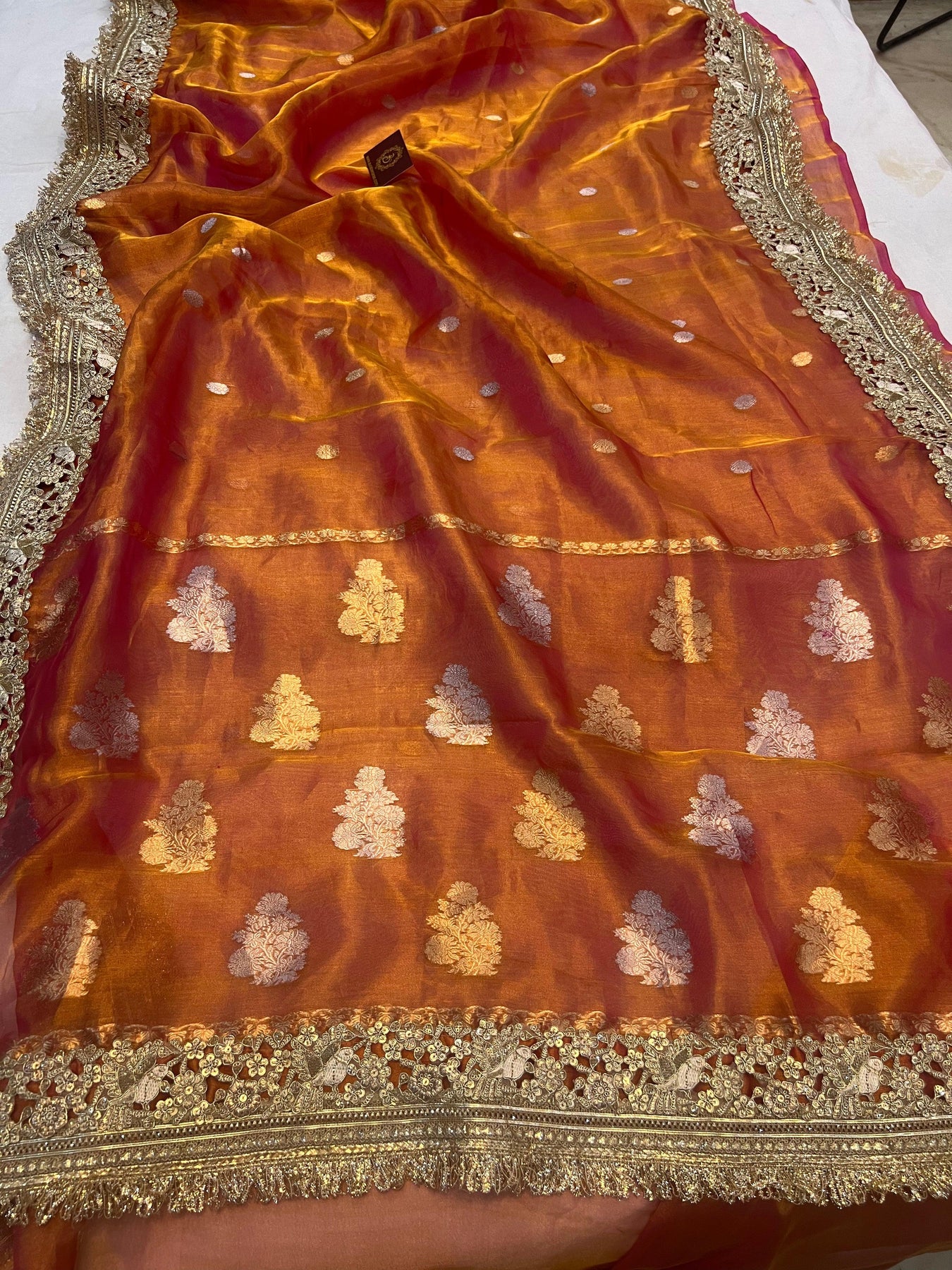 Orange Pure Banarasi Handloom Tissue Silk Saree