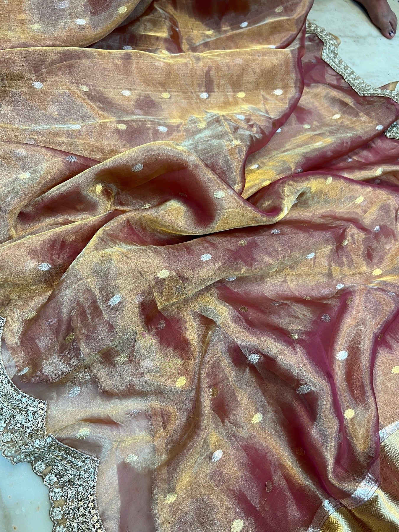 Pink Pure Banarasi Handloom Tissue Silk Saree