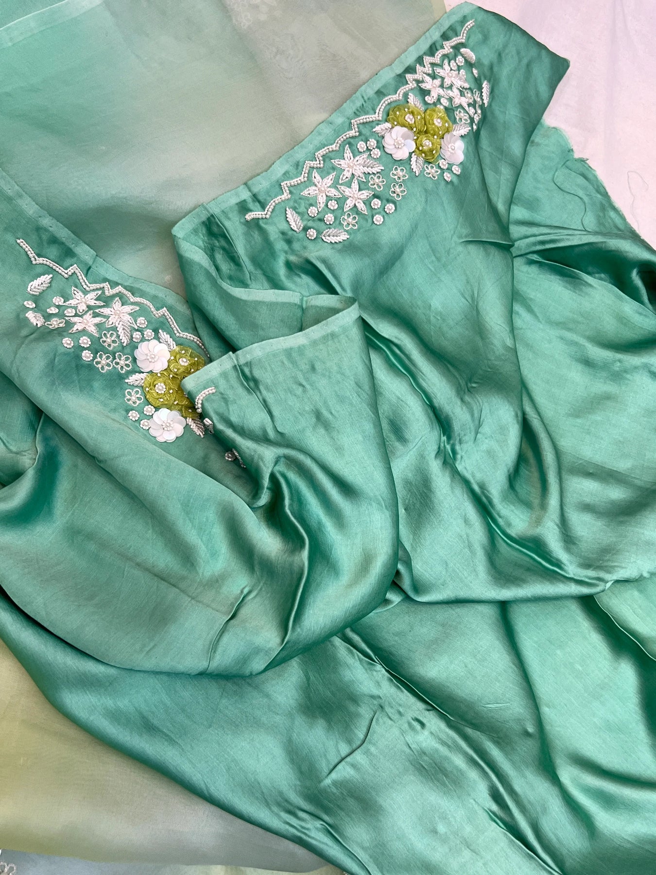 Pista Green Shaded Pure Kora Silk Handloom Banarasi Saree