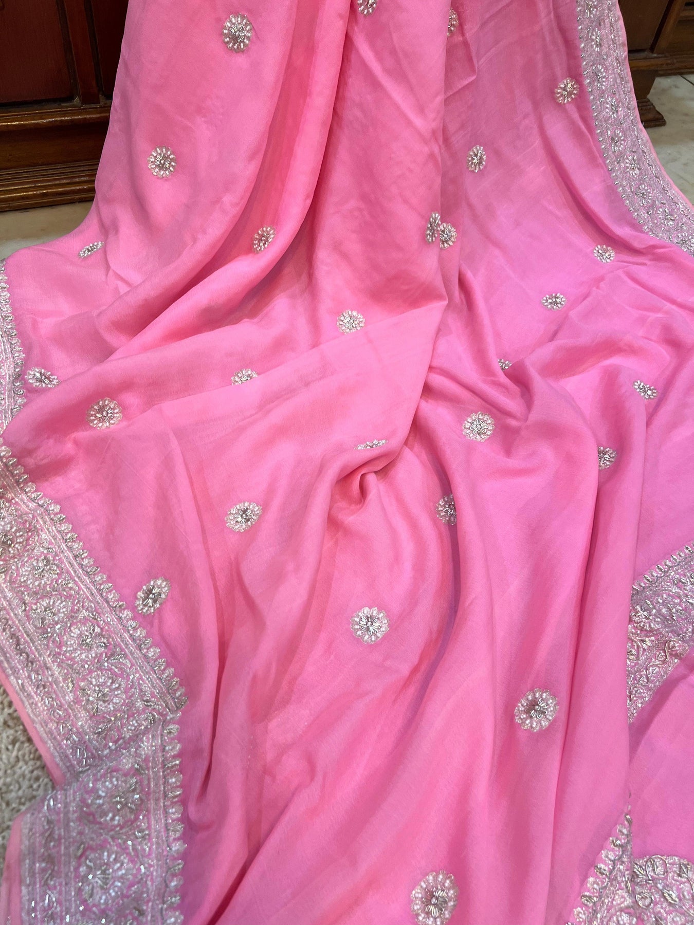 Pre Order :: Baby Pink Pure Banarasi Handloom Georgette Silk Saree