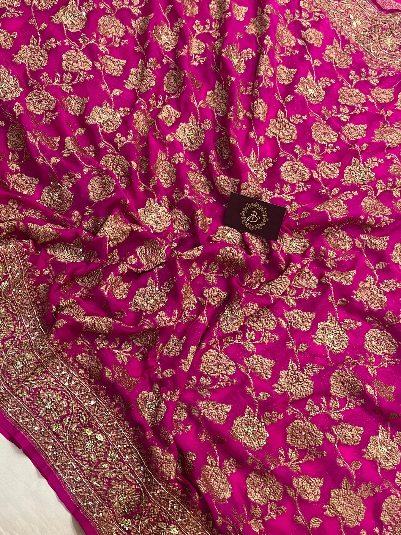 Pre Order :: Rani Pink Zardozi Pure Banarasi Khaddi Georgette Silk Saree