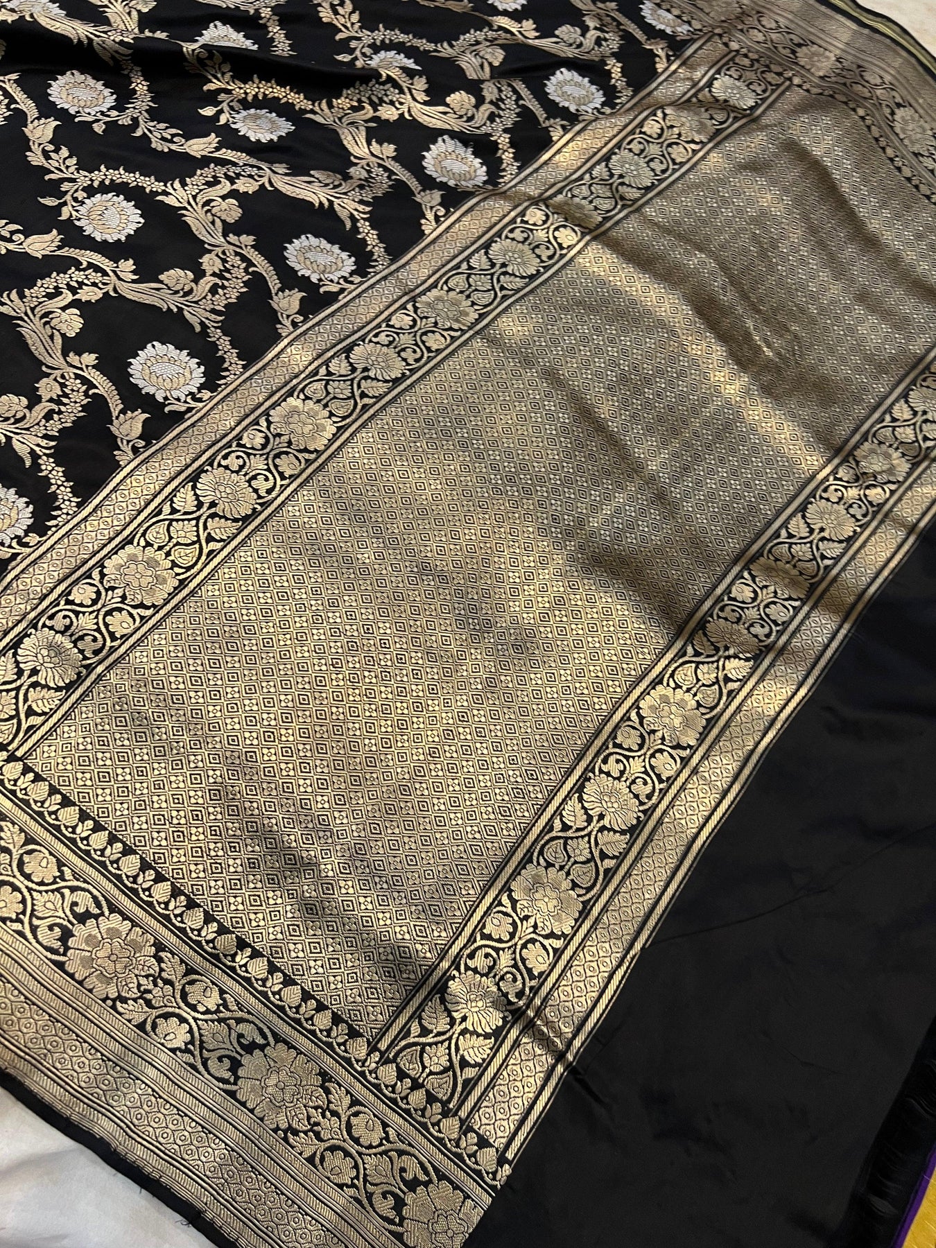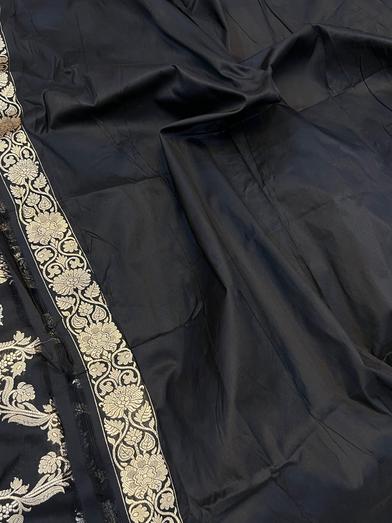 Black Pure Katan Silk Banarasi Handloom Kadwa Jangla Saree