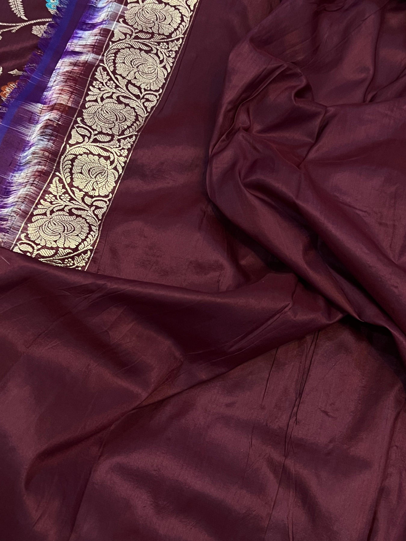 Garnet Pure Katan Silk Banarasi Handloom Kadwa Meenakari Shikargaah Jangla Saree