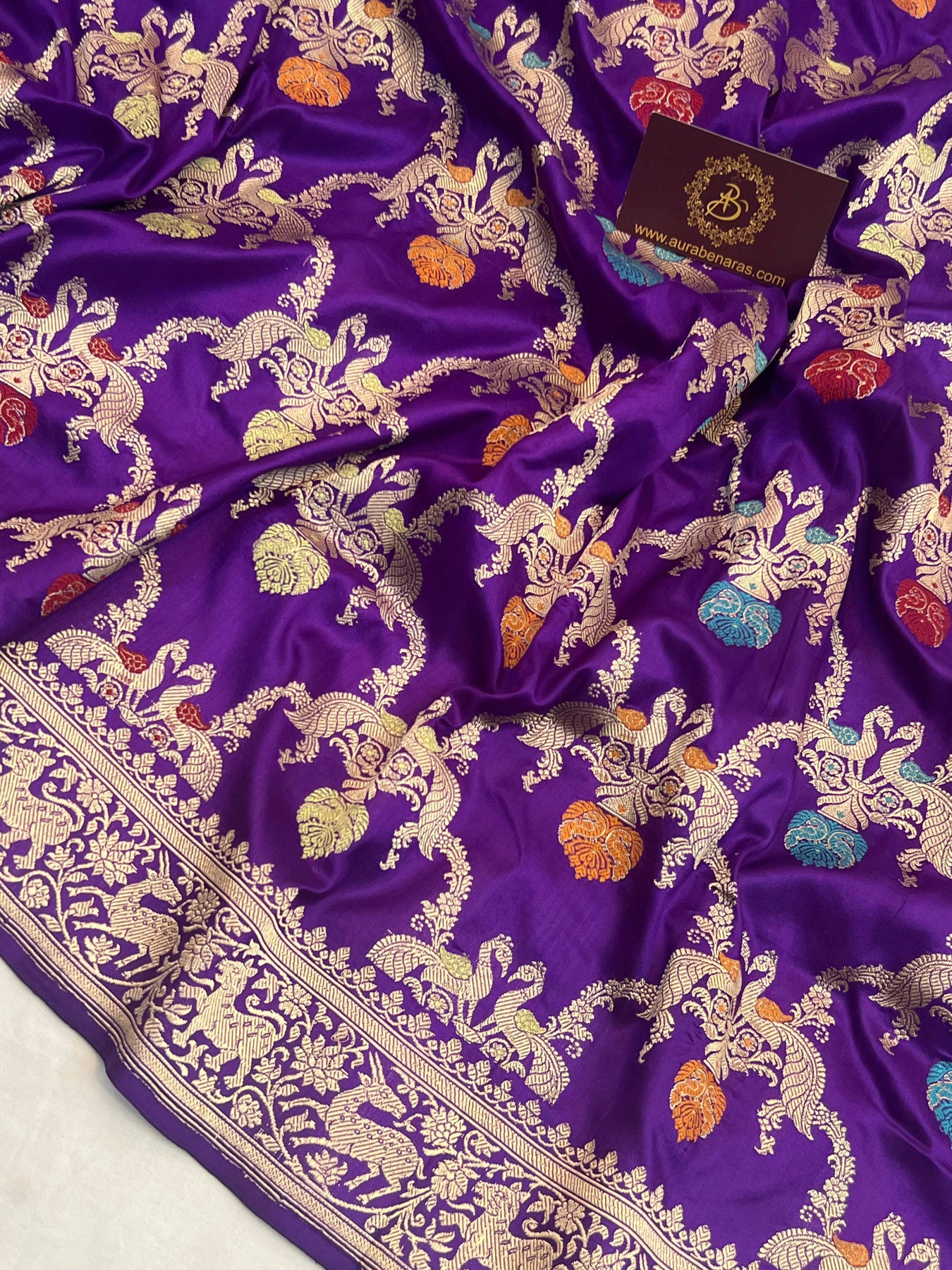Purple Pure Katan Silk Banarasi Handloom Kadwa Meenakari Shikargaah Jangla Saree