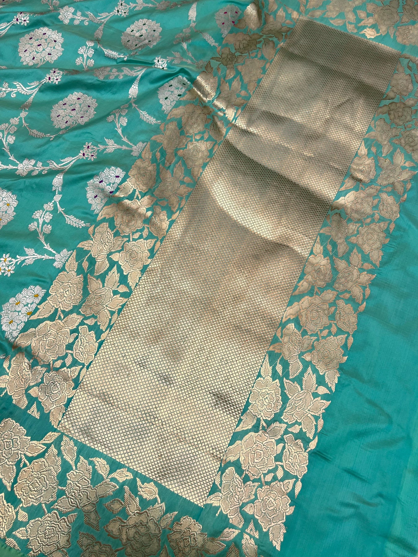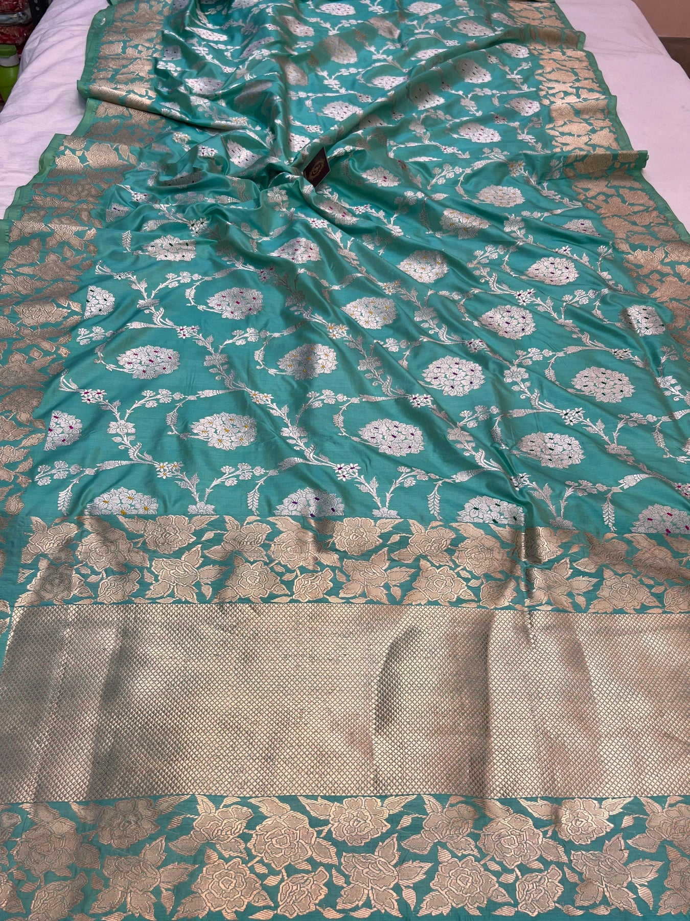 Sea Green Pure Katan Silk Banarasi Handloom Kadwa jangla Saree