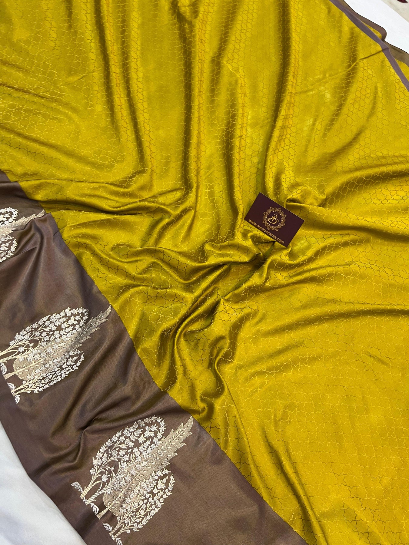 Mustard Yellow Pure Banarasi Handloom Katan Satin Silk Saree