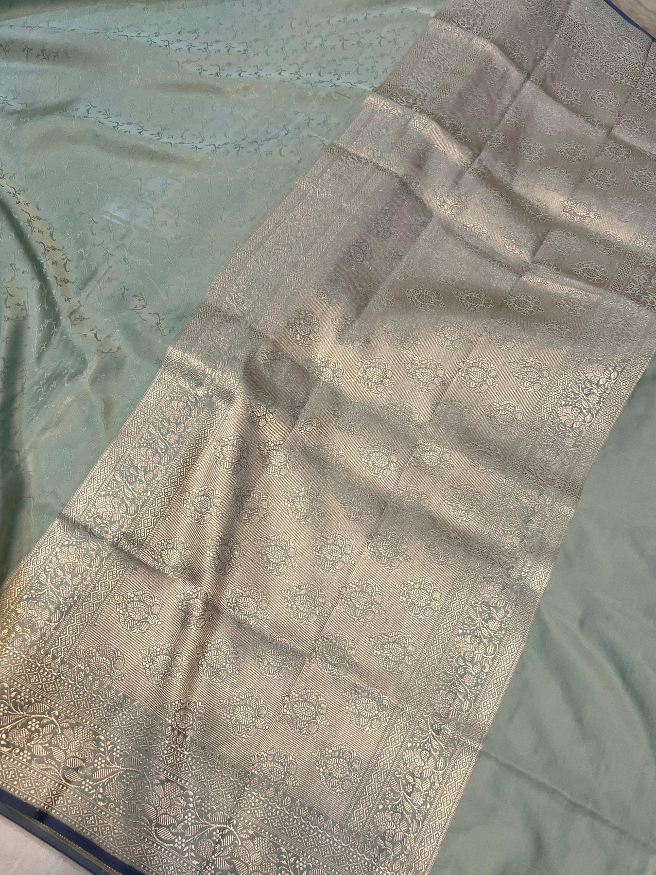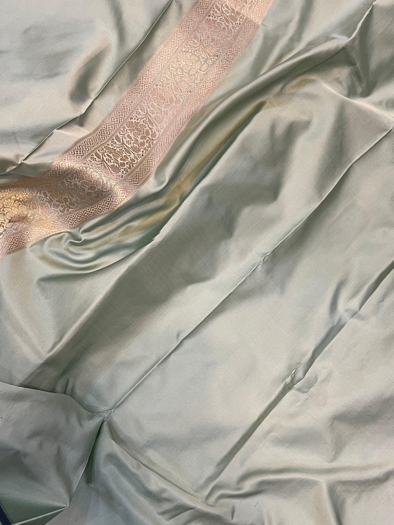 Pastel Grey Pure Katan Satin Silk Banarasi Handloom Saree with Tanchui Weave