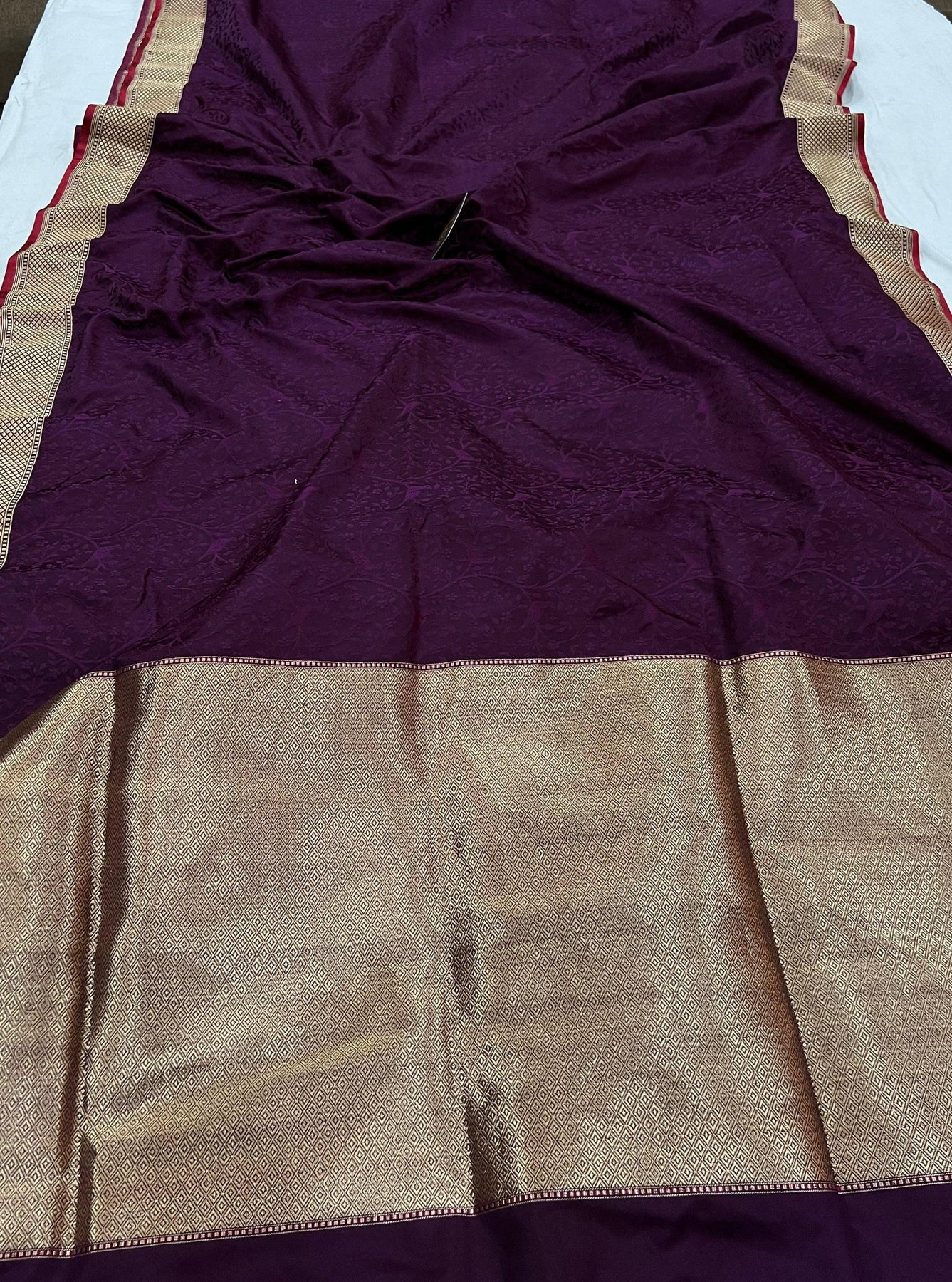 Wine Pure Banarasi Handloom Katan Satin Silk Saree