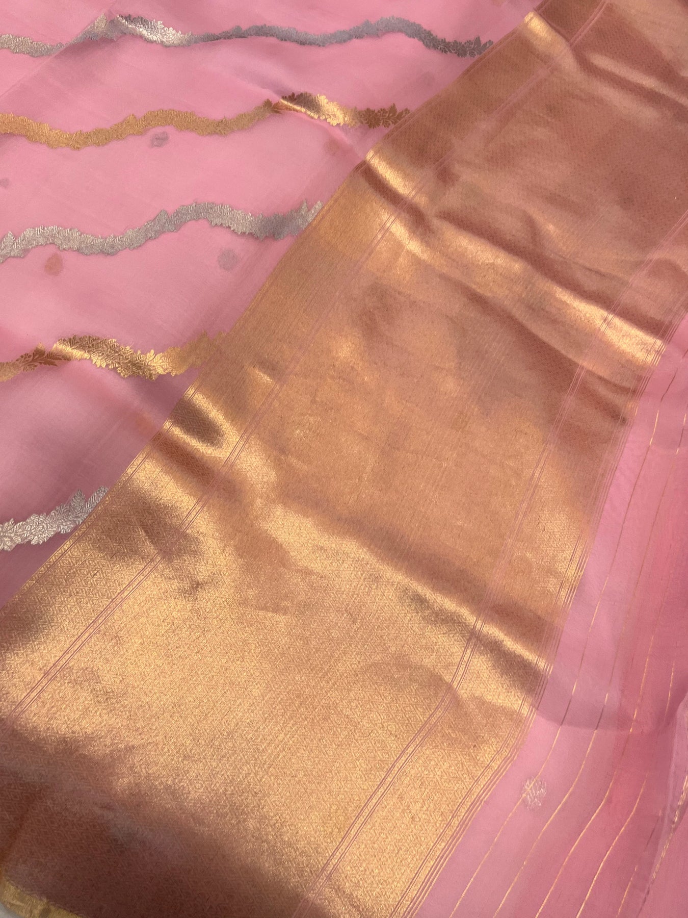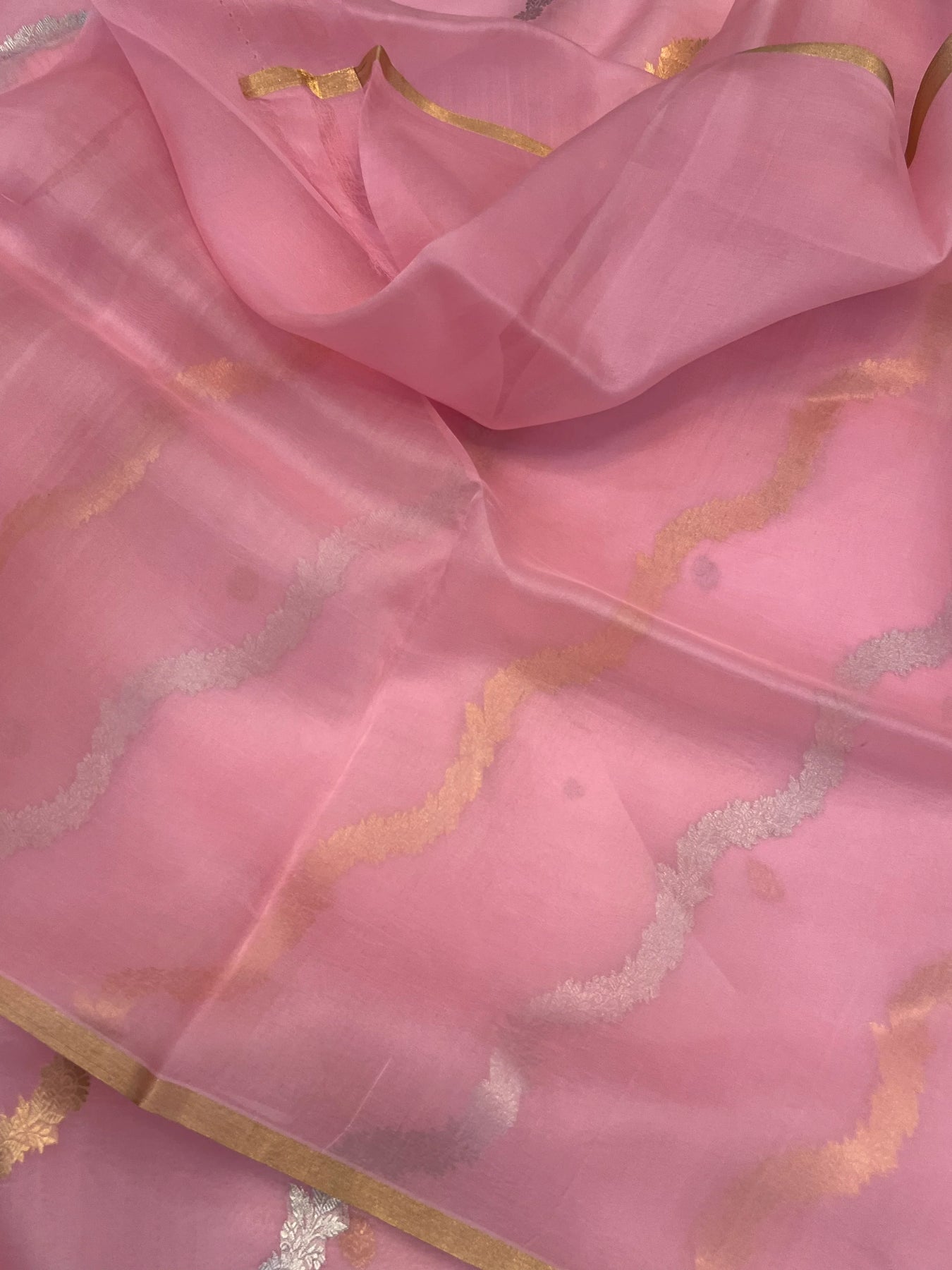Baby Pink Pure Kora Silk Handloom Banarasi Saree
