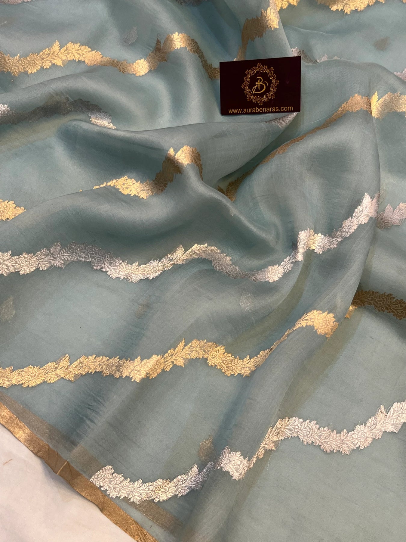 Blue Pure Kora Silk Handloom Banarasi Saree