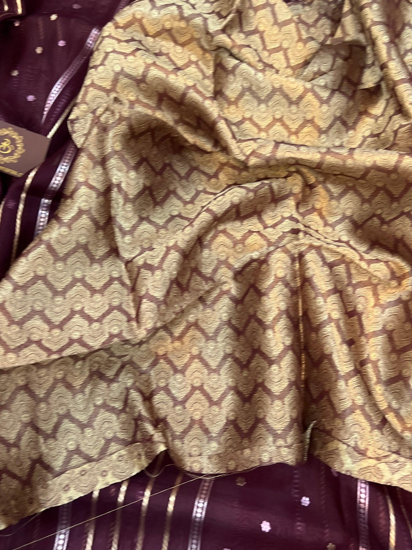 Deep Maroon Banarasi Handloom Kora Silk Saree