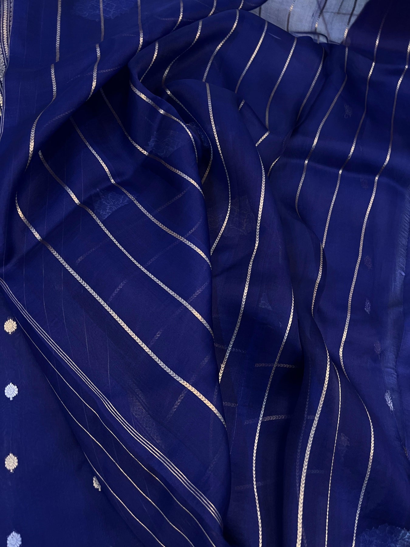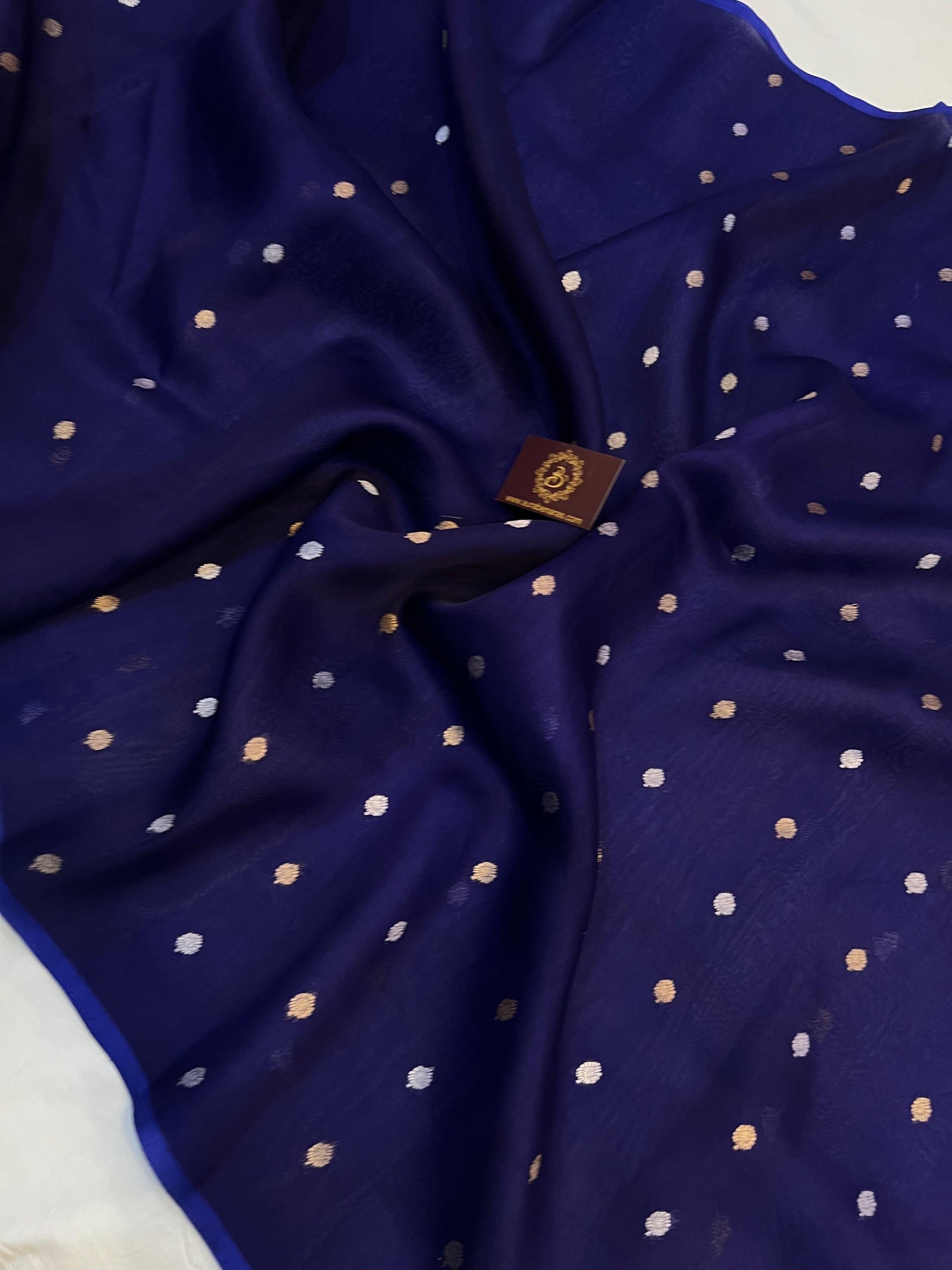 Navy Blue Pure Kora silk Handloom Banarasi Saree