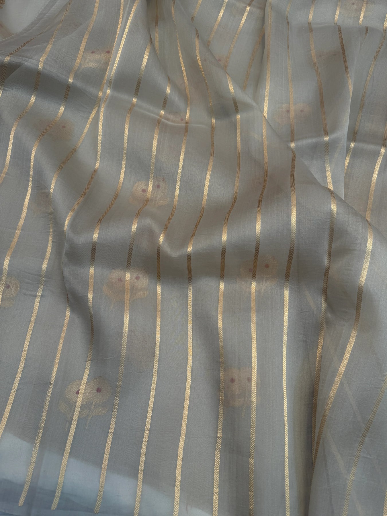 Ash Grey Pure Kora Silk Handloom Banarasi Saree