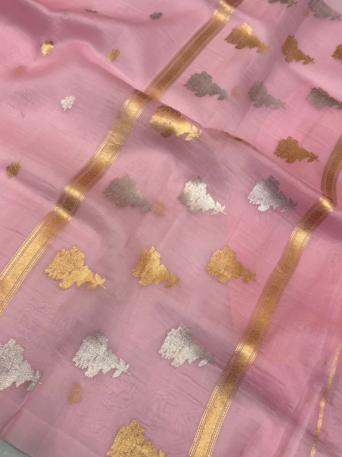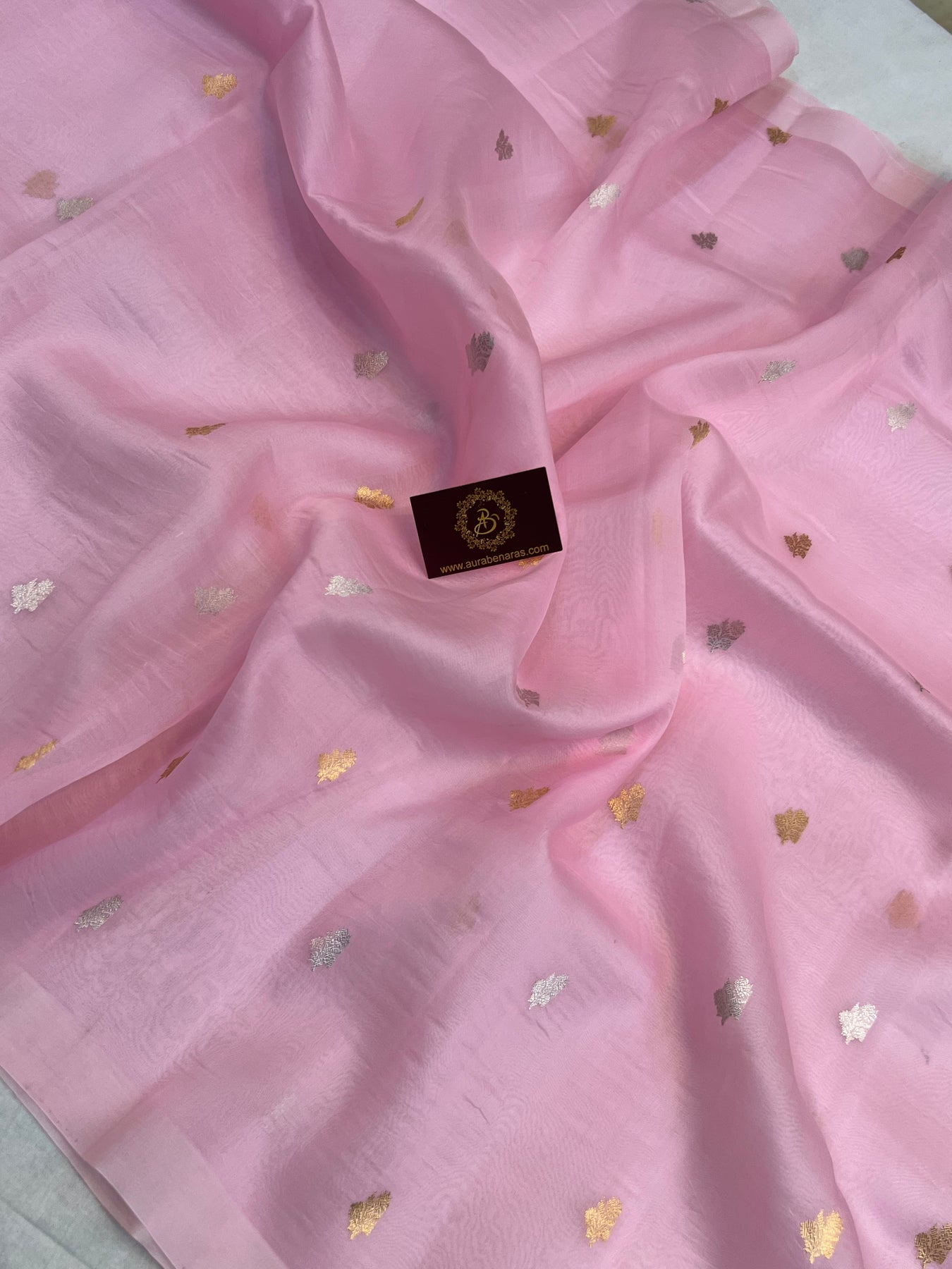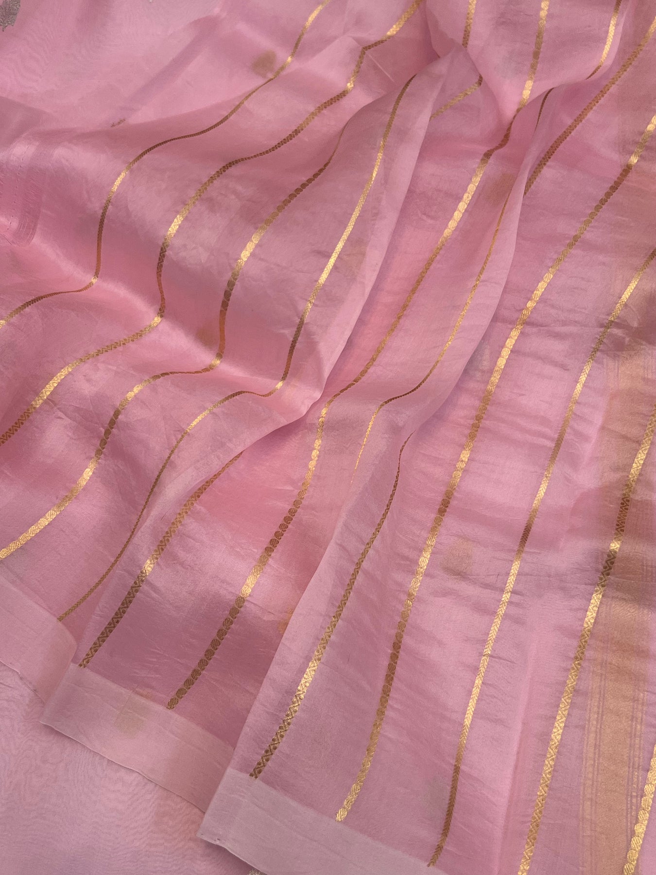 Baby Pink Pure Kora Silk Handloom Banarasi Saree