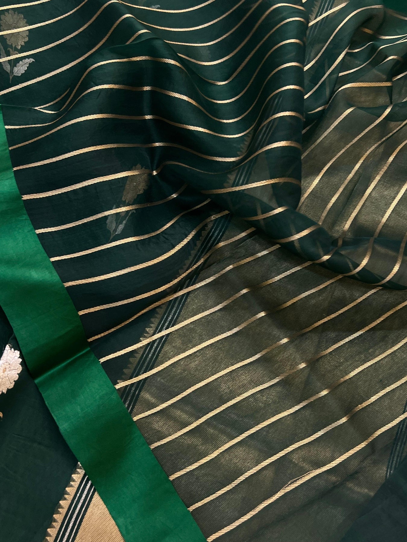 Bottle Green Banarasi Handloom Kora Silk Saree