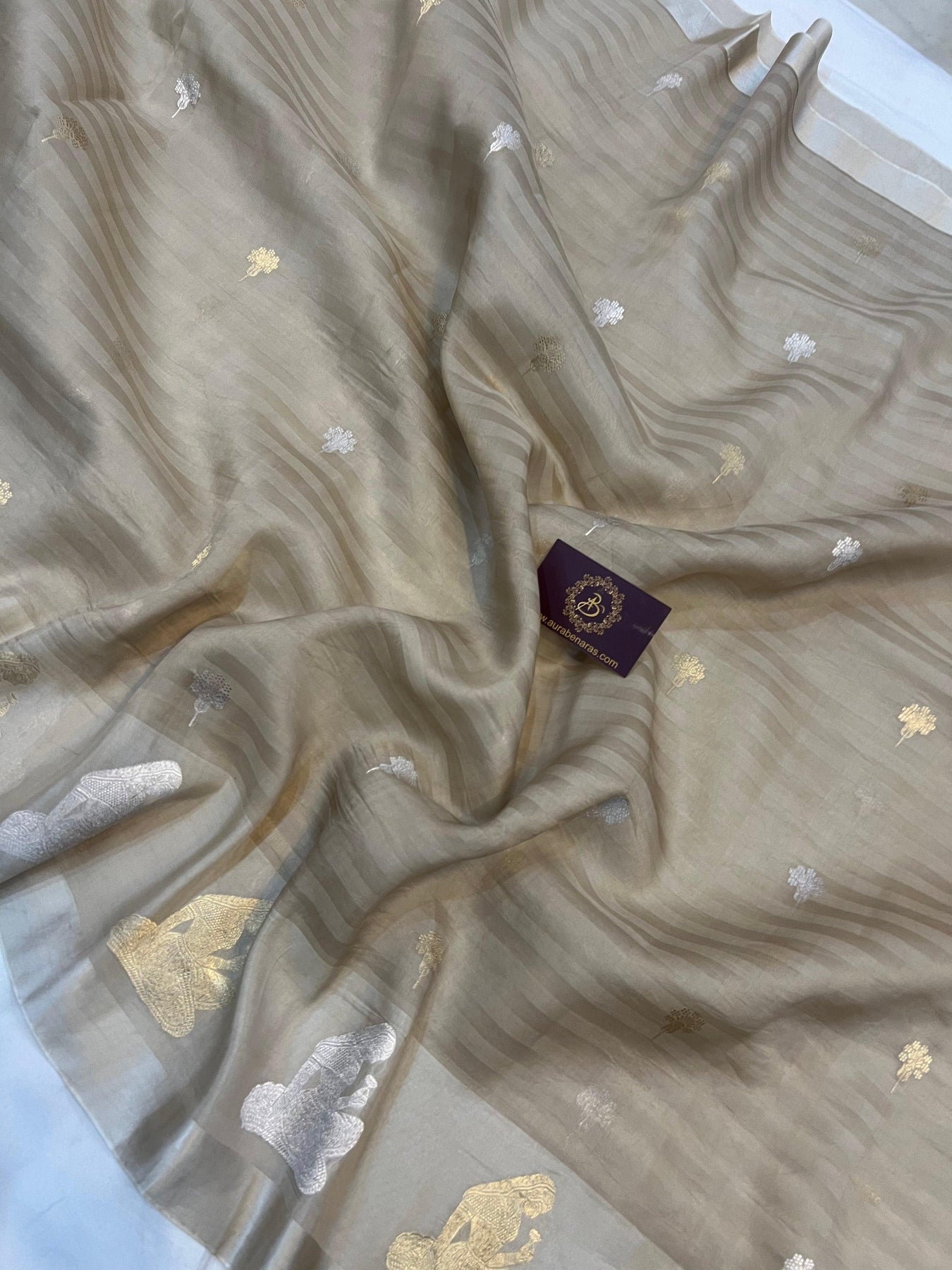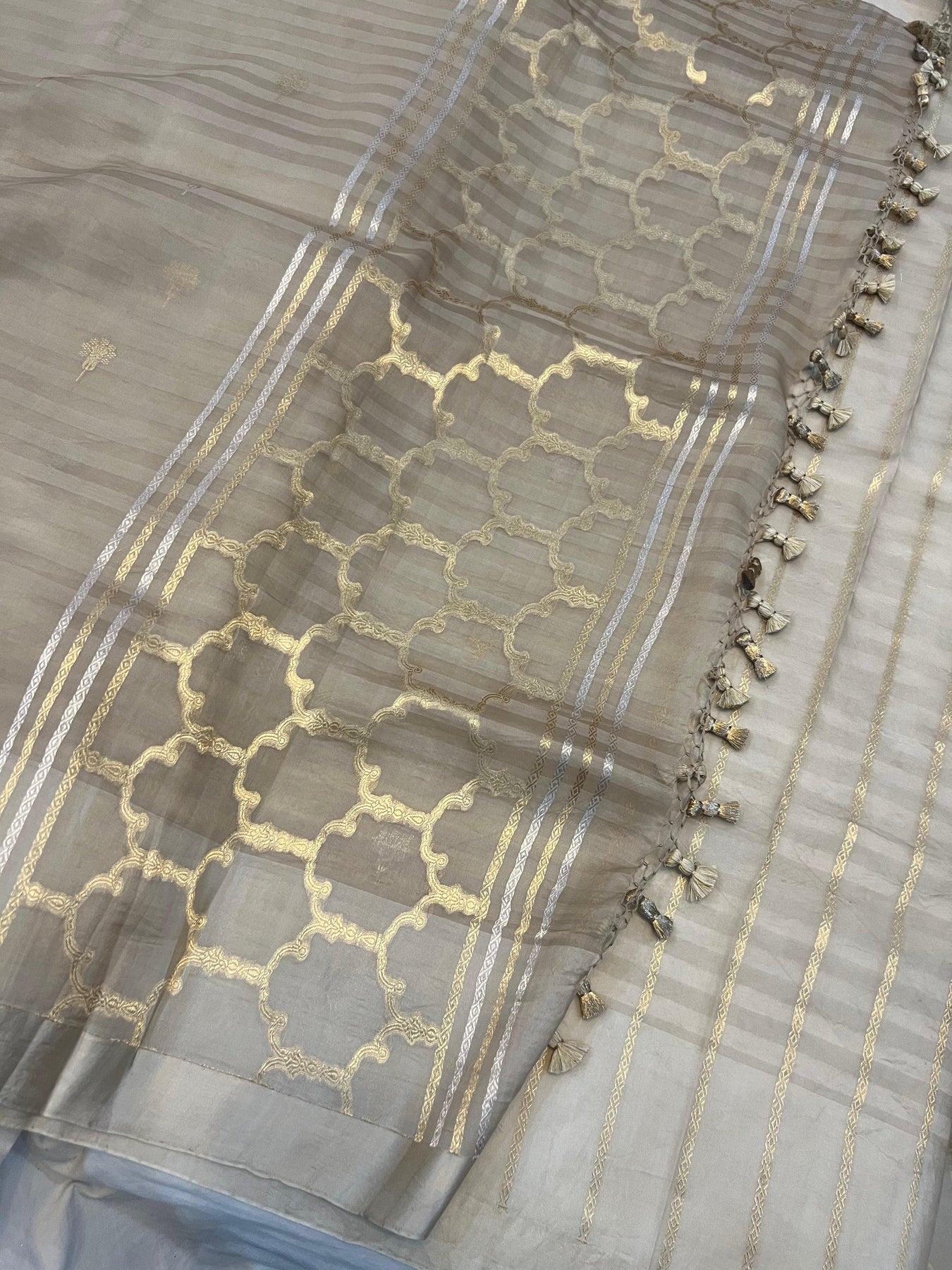 Pastel Grey Pure Banarasi Handloom Kora Silk Saree
