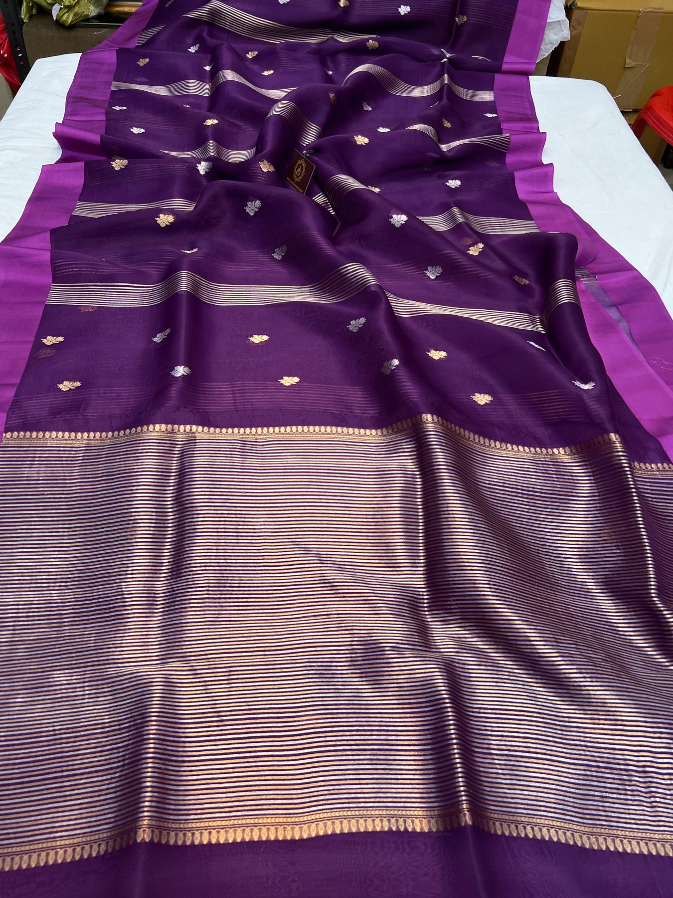 - Color - Purple Banarasi saree.