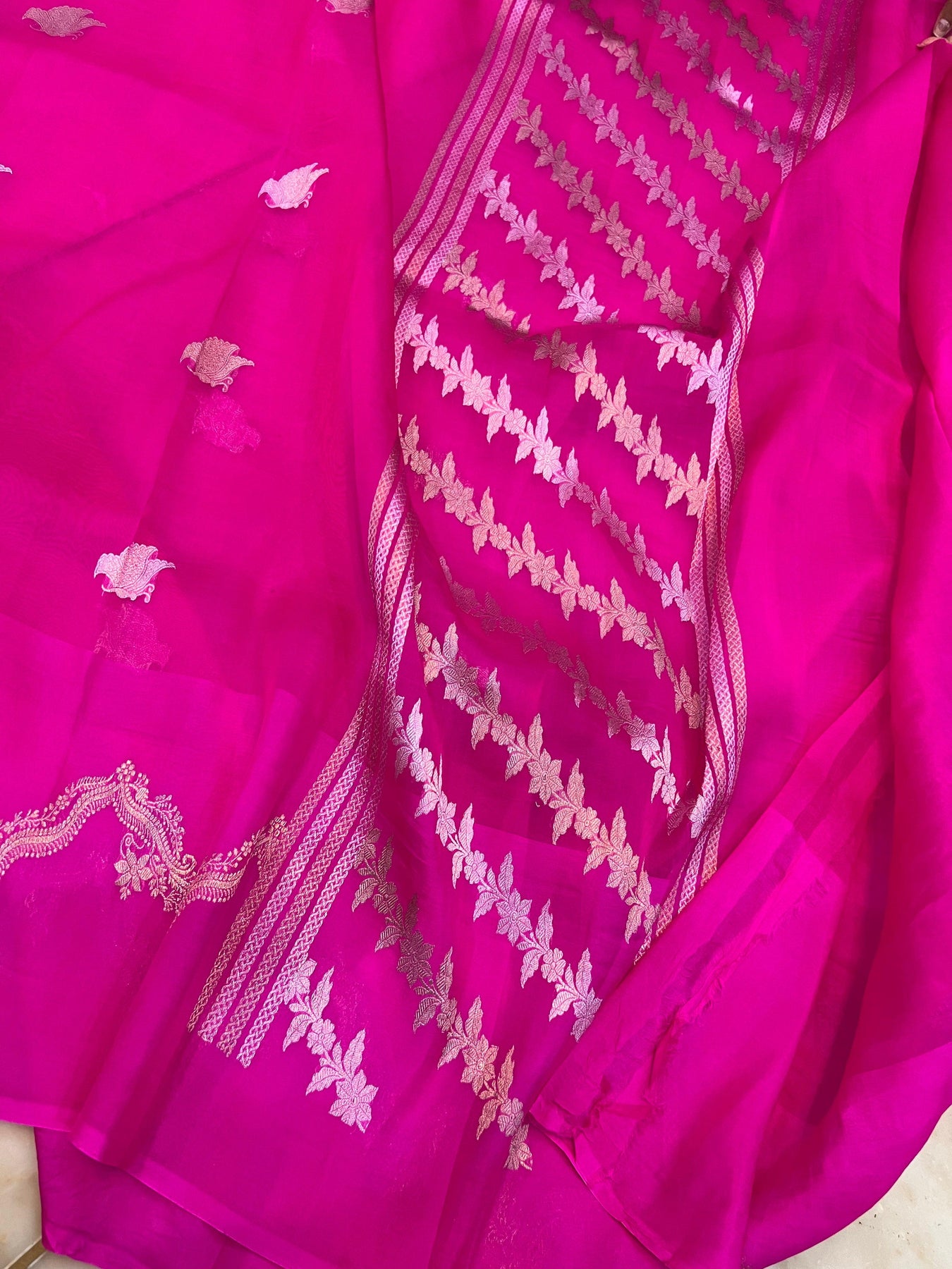 Rani Pink Banarasi Handloom Kora Silk Saree