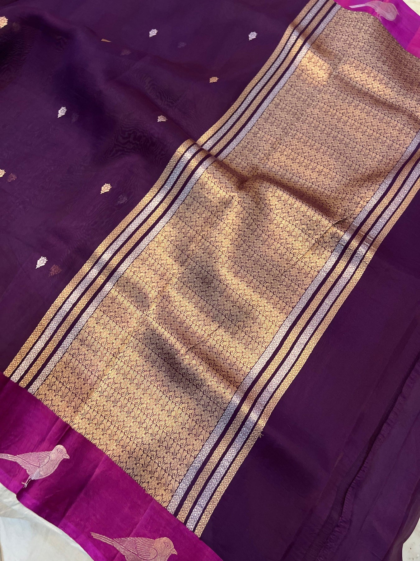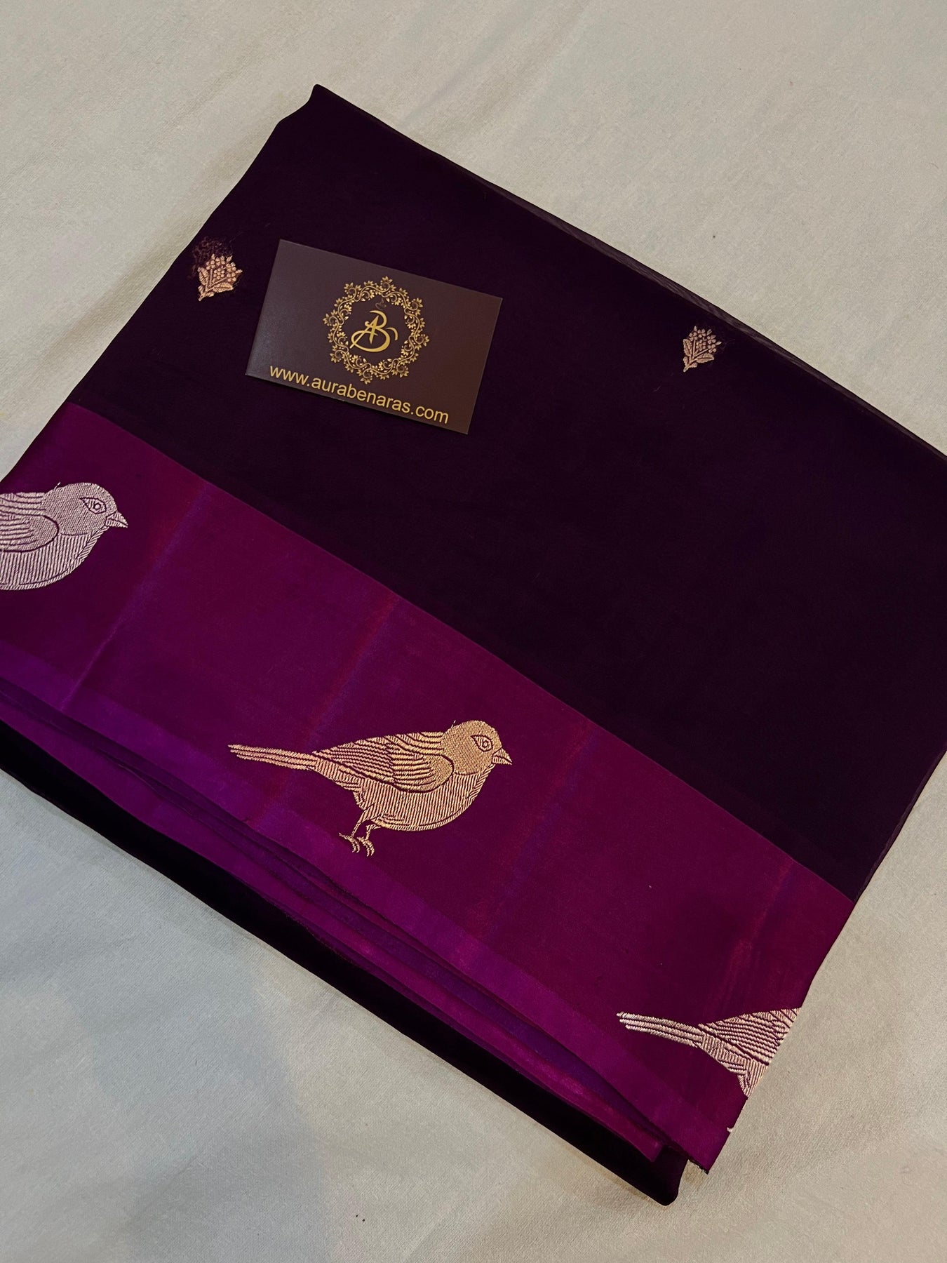 Wine Pure Banarasi Handloom Kora Silk Saree