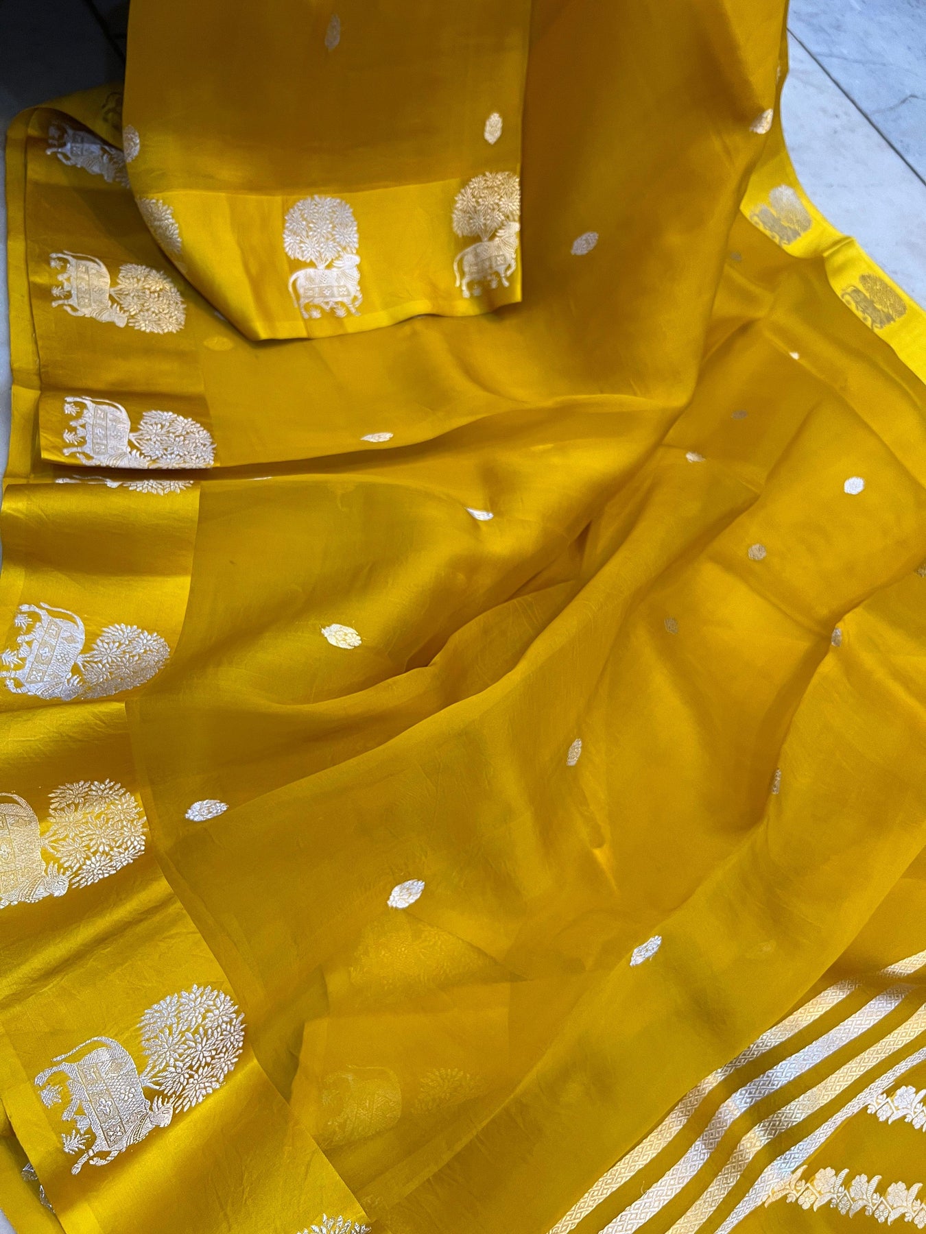 Yellow Pure Banarasi Handloom Kora Silk Saree