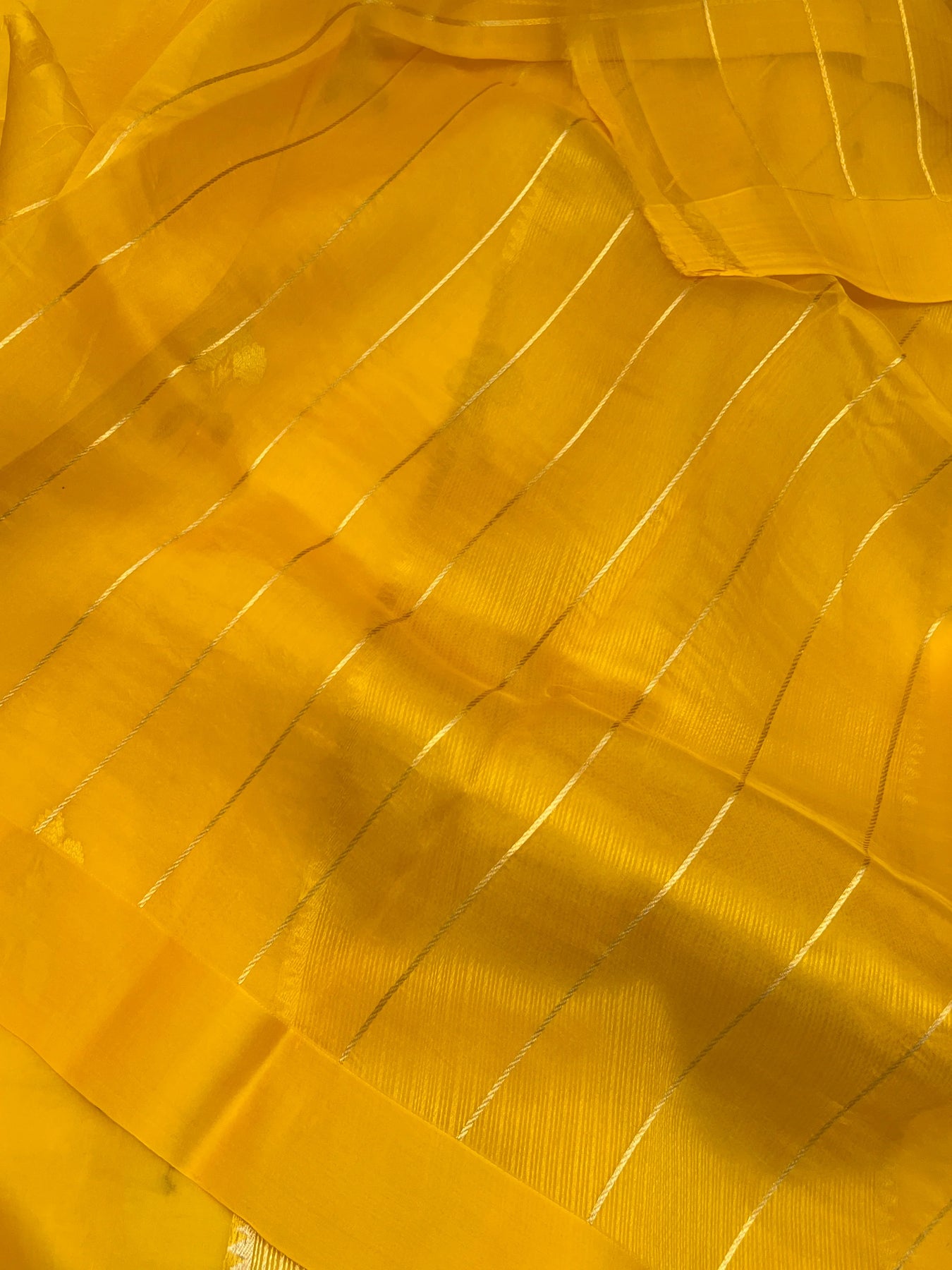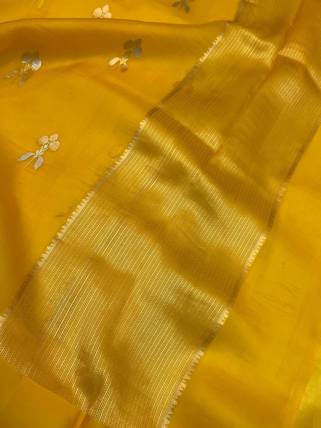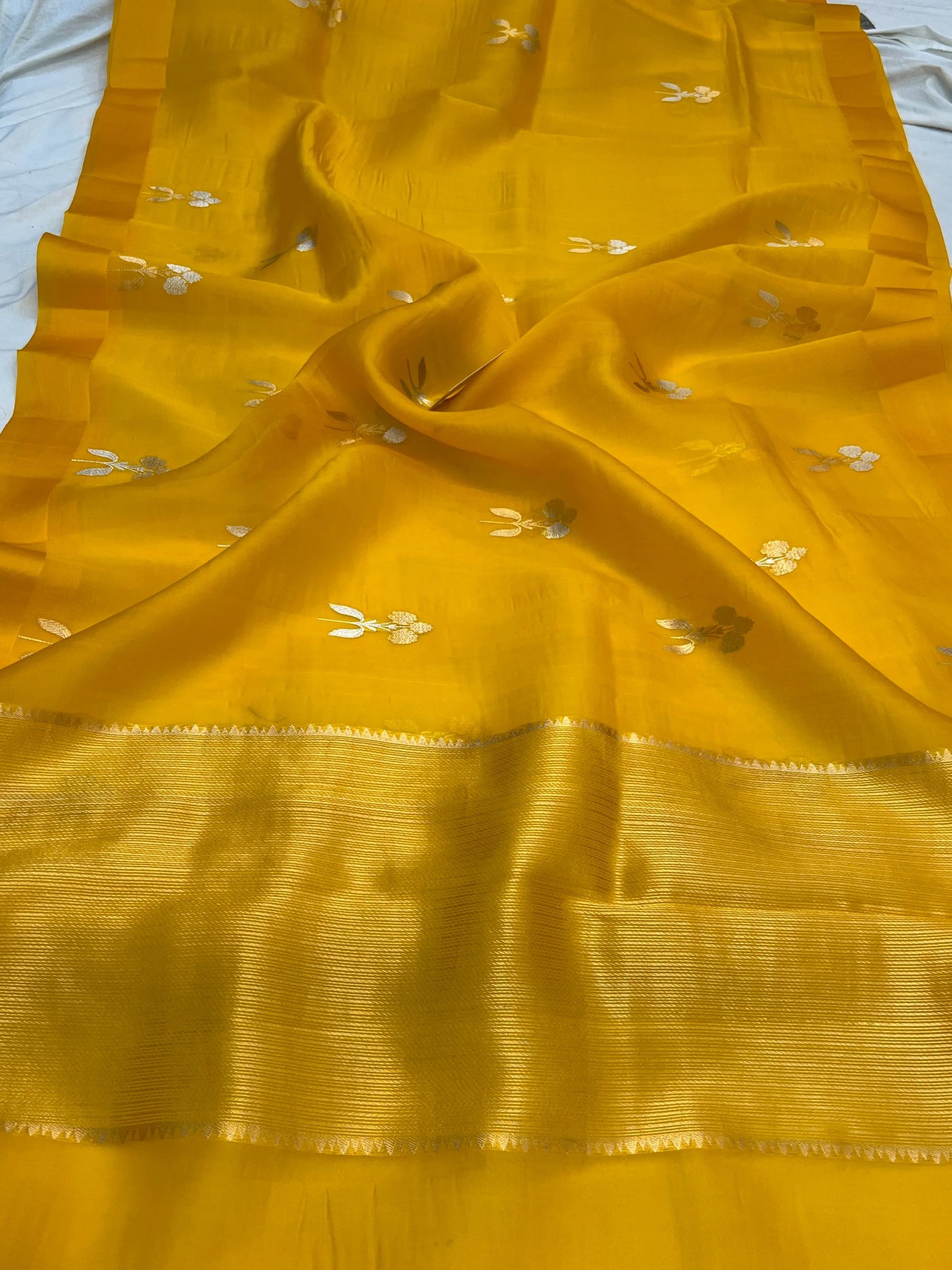 Yellow Pure Kora Silk Handloom Banarasi Saree
