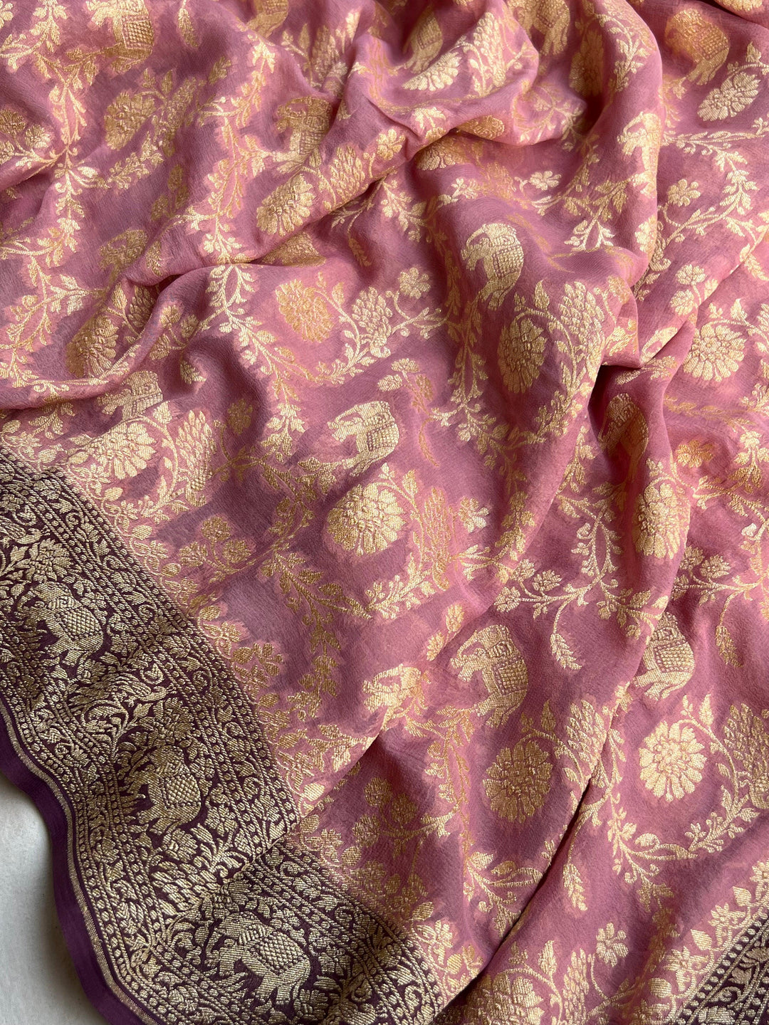 Dusty Peach Banarasi Pure Khaddi Georgette Saree