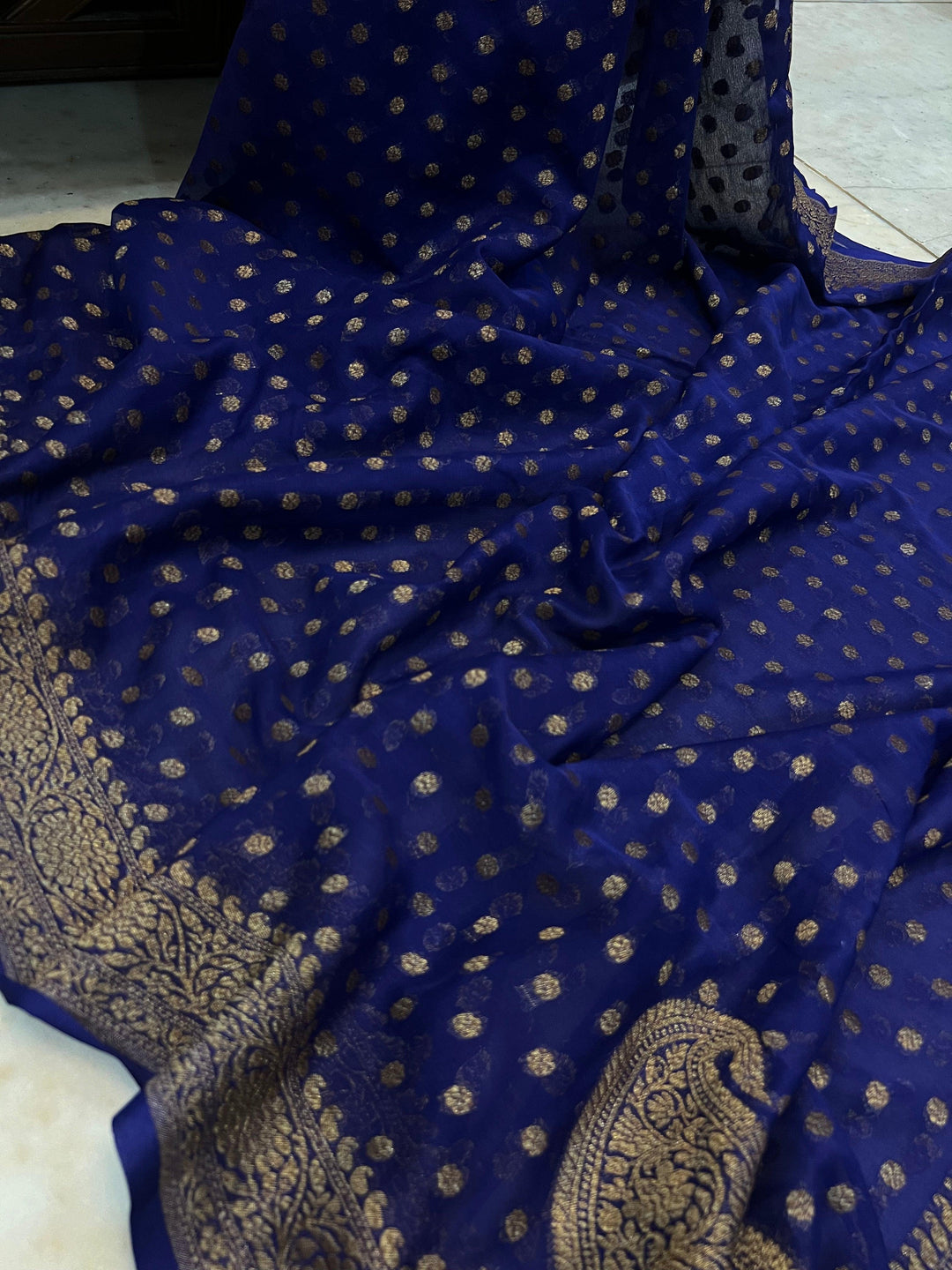 Royal Blue Pure Banarasi Khaddi Georgette Saree